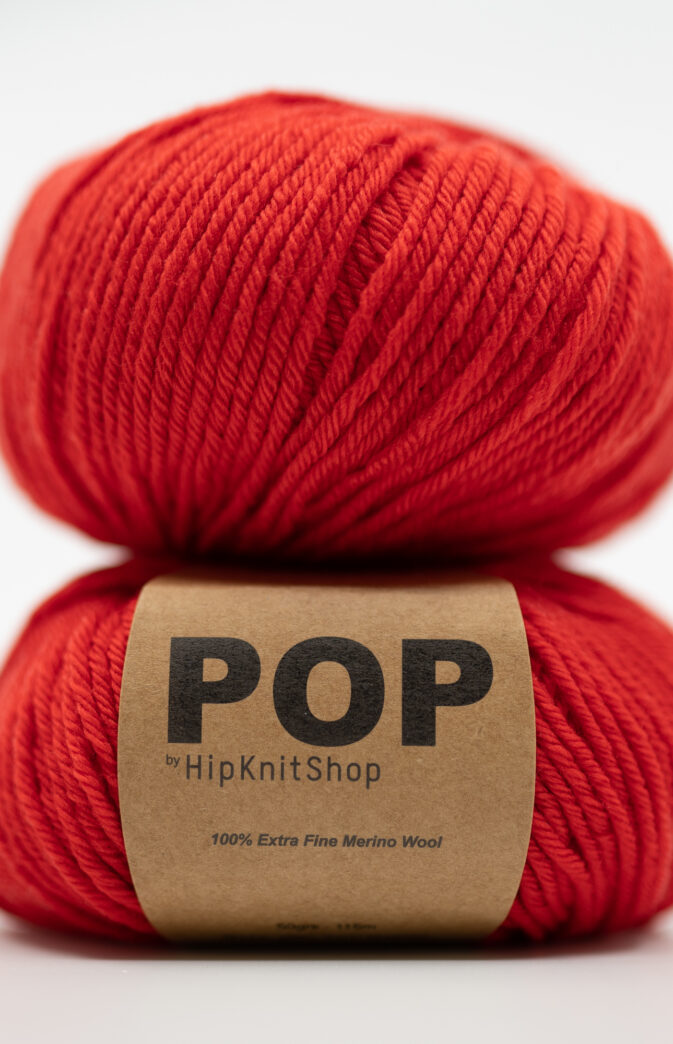 POP merino 100% extra fine merino wool in bright red color. Super soft and comfortable against the skin. Easy to knit with. Merino wool is breathable and durable, keeps its shape and form well over time.