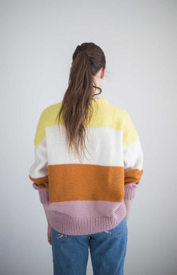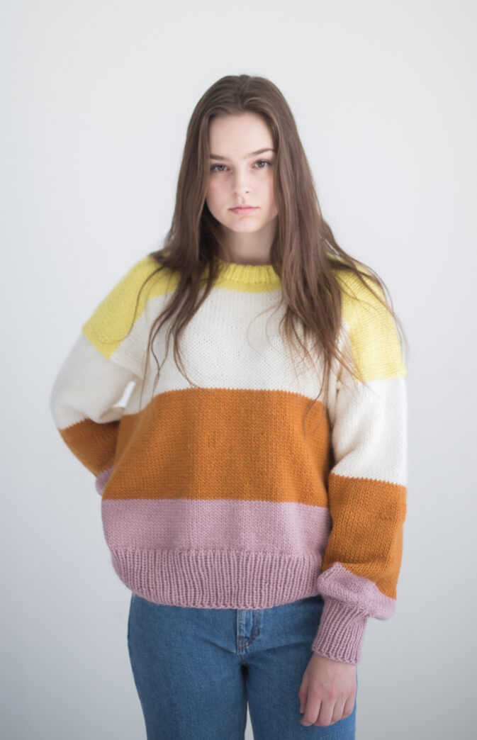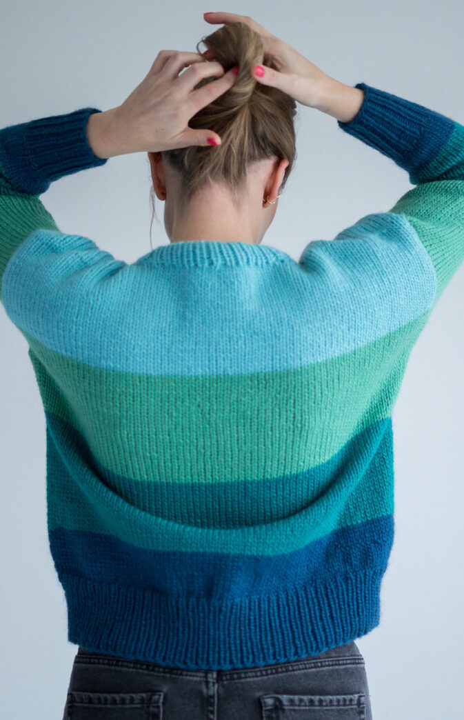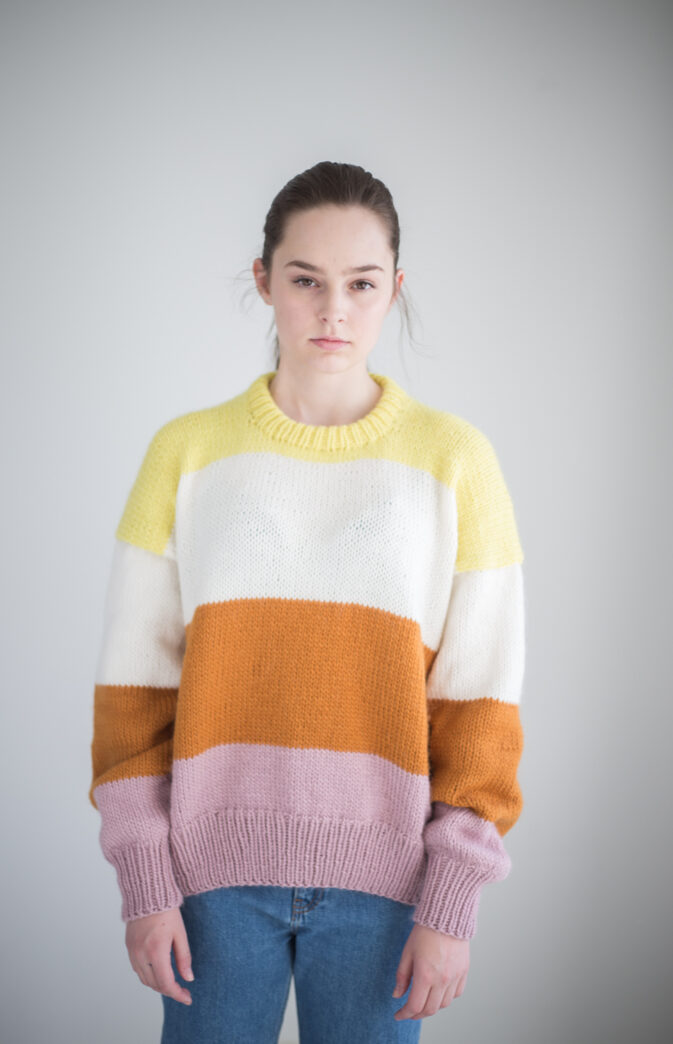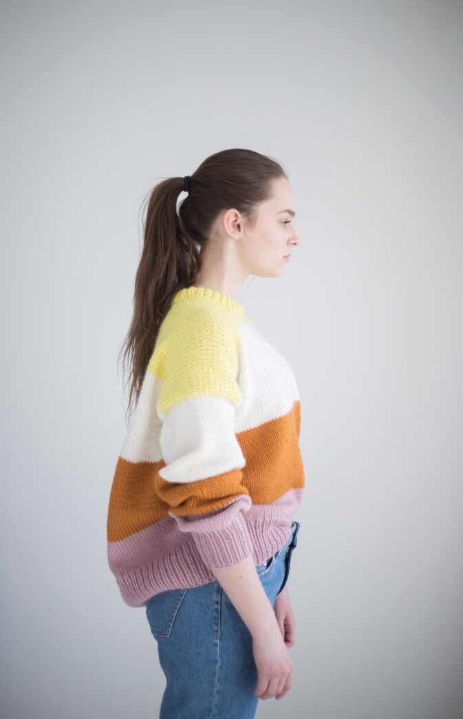 We love stripes! And we love knitting colors together. This sweater is knitted in 4 different colors.