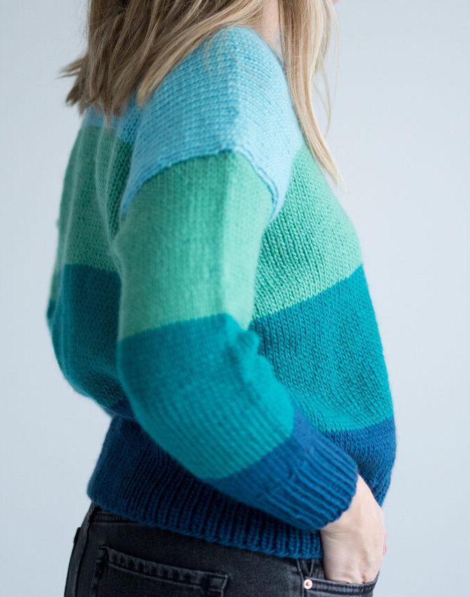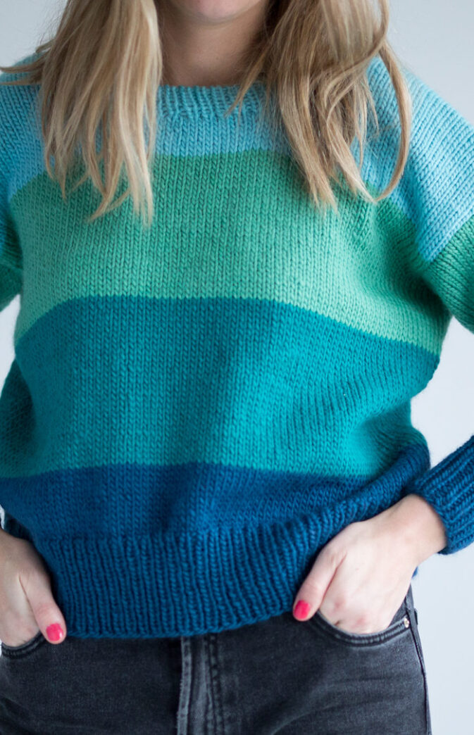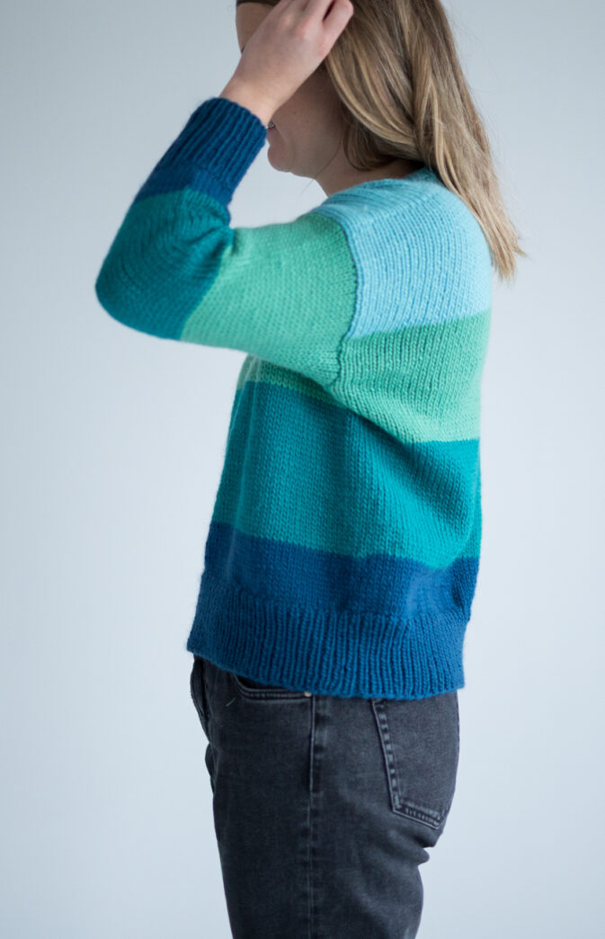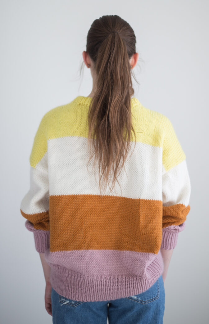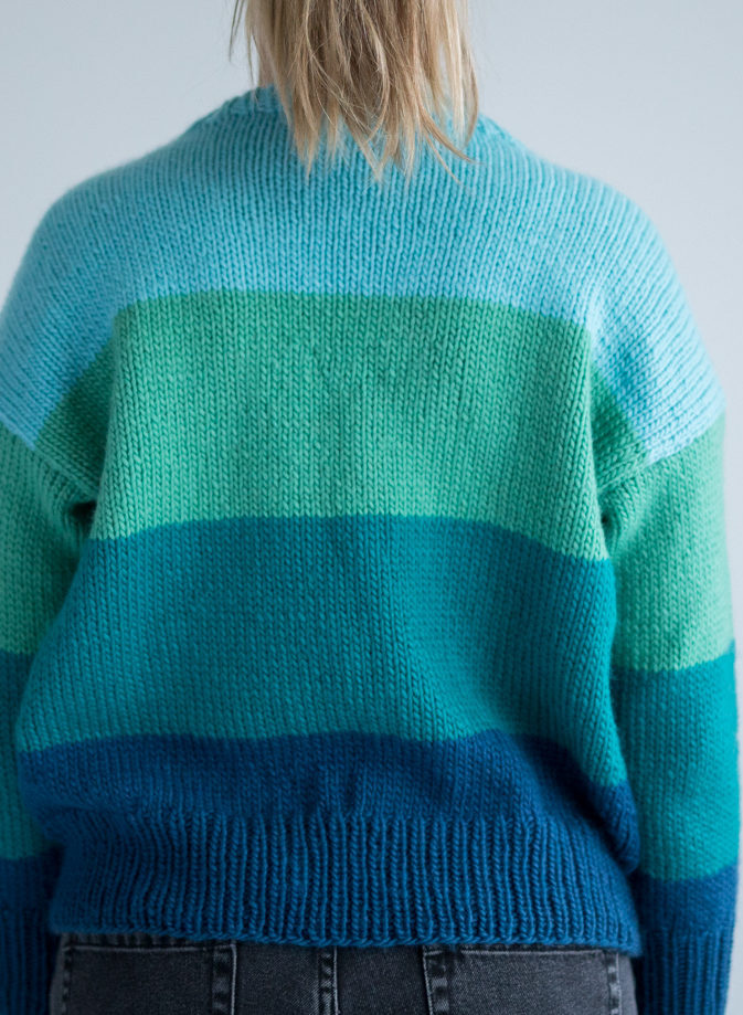We love stripes! And we love knitting colors together. This sweater is knitted in 4 different colors.