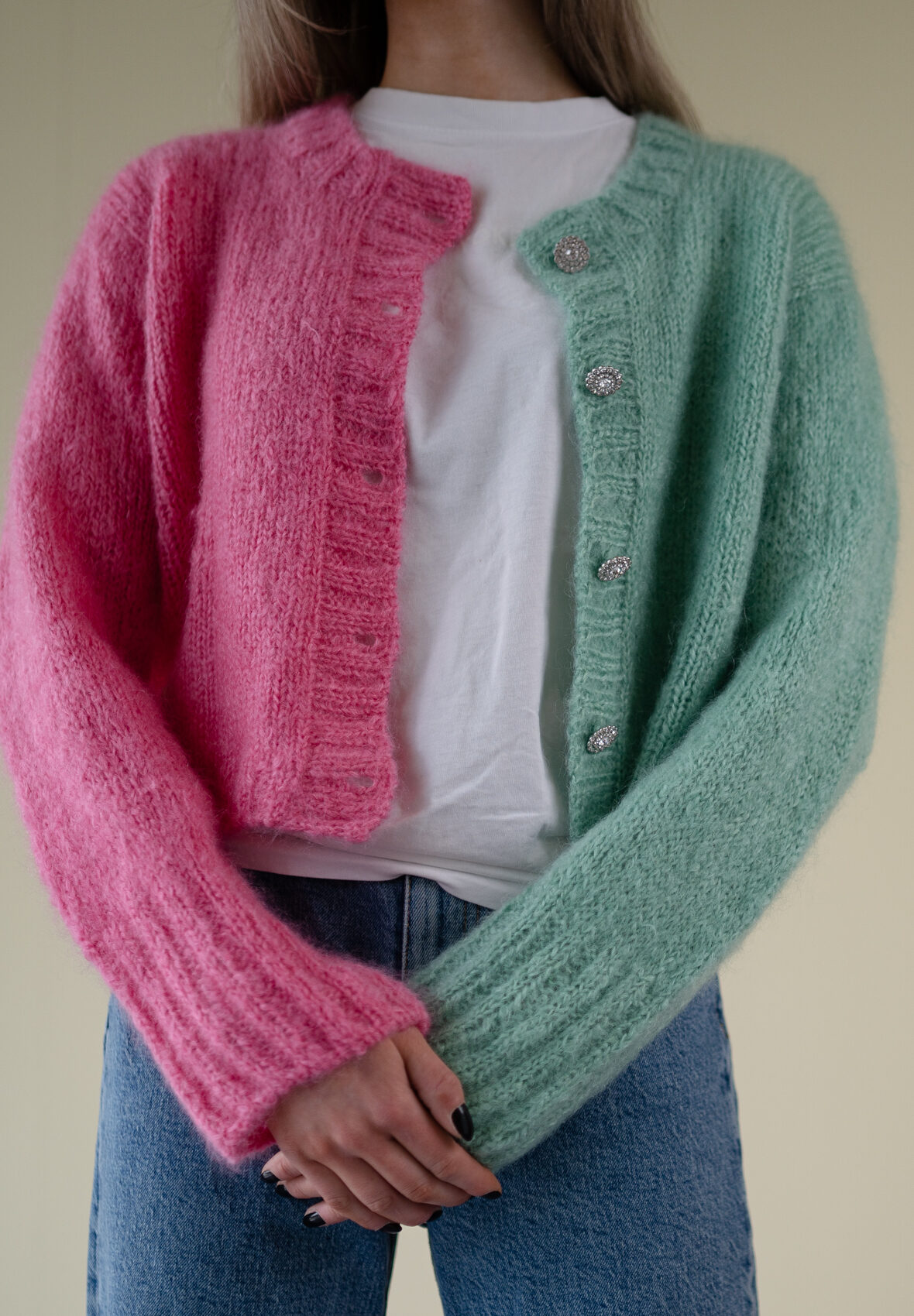 SIDEBYSIDE CARDIGAN TWO COLOR KNITTING PATTERN AND YARN