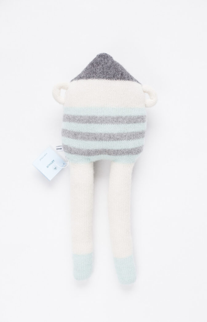 Finished knitted cuddly teddy bear. Length 47 cm.