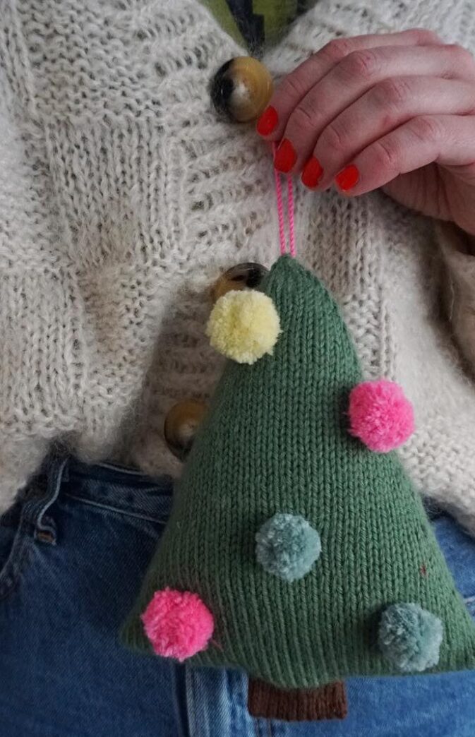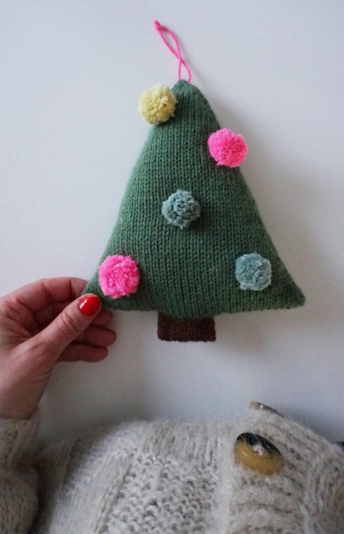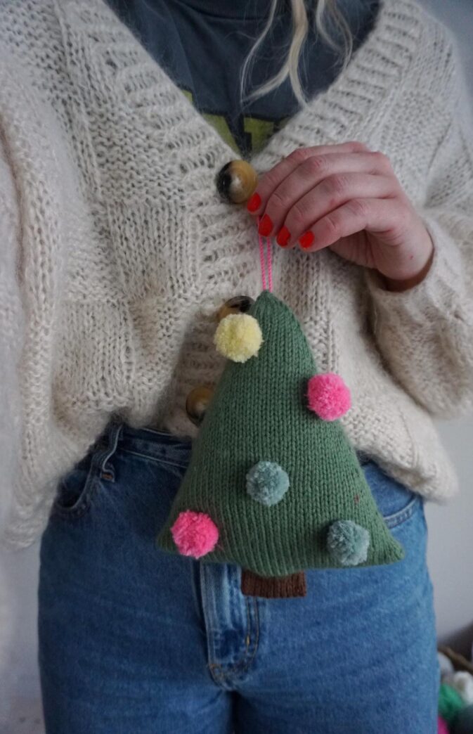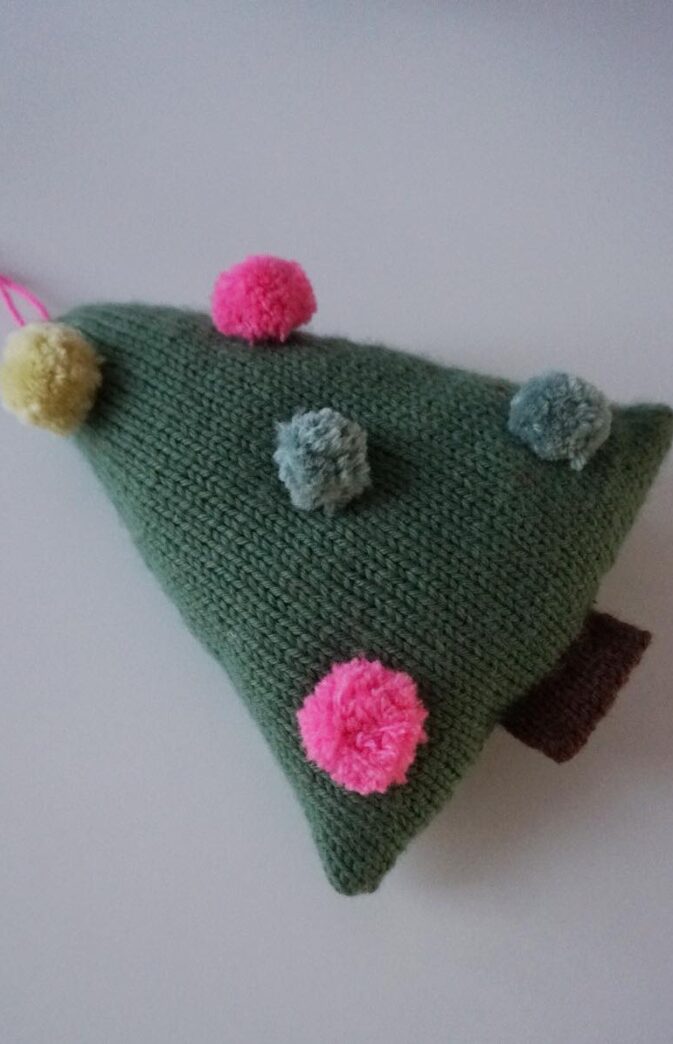 POMPOM KNITTED CHRISTMAS TREE KNITTING PATTERN AND YARN
