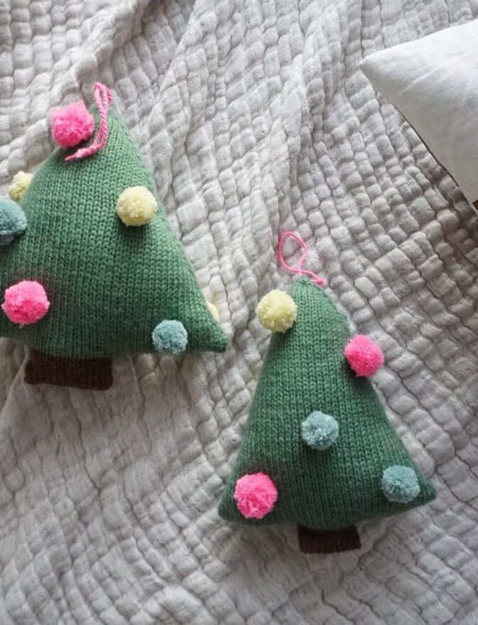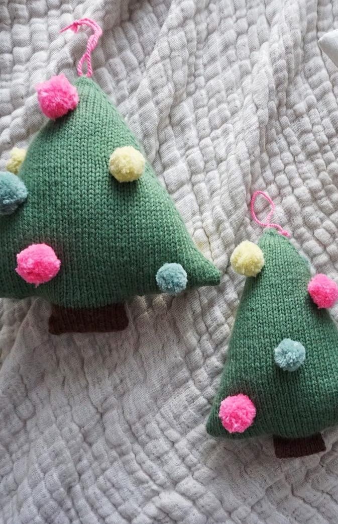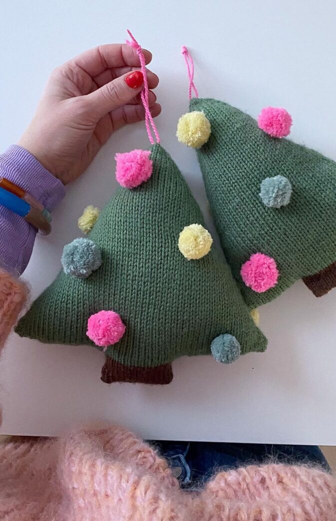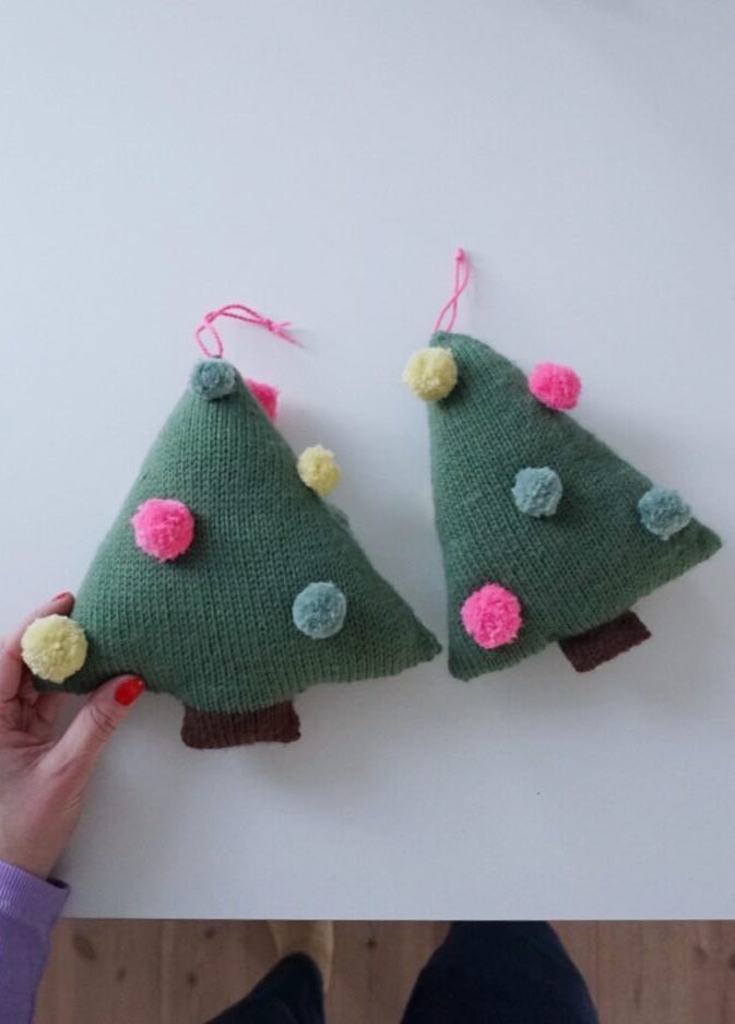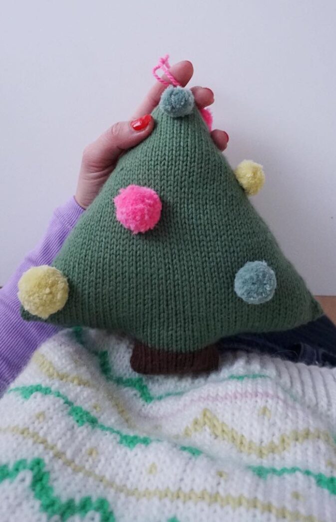 POMPOM KNITTED CHRISTMAS TREE KNITTING PATTERN AND YARN