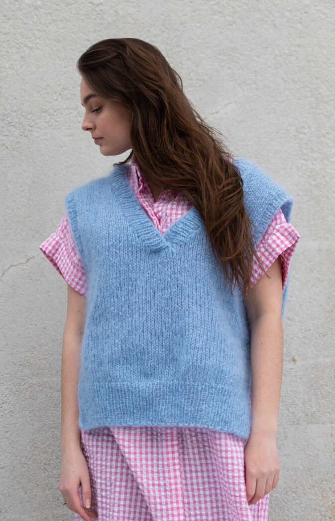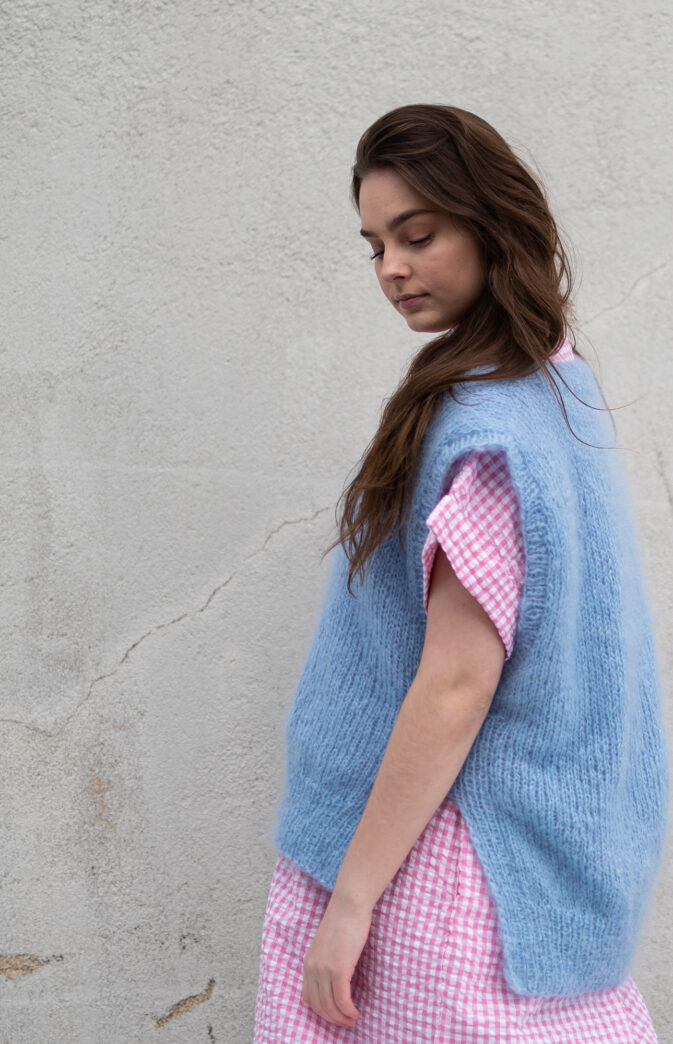 Pictured in Fluff mohair "Snow" (size M) and "Baby Blues" (size L-XL)