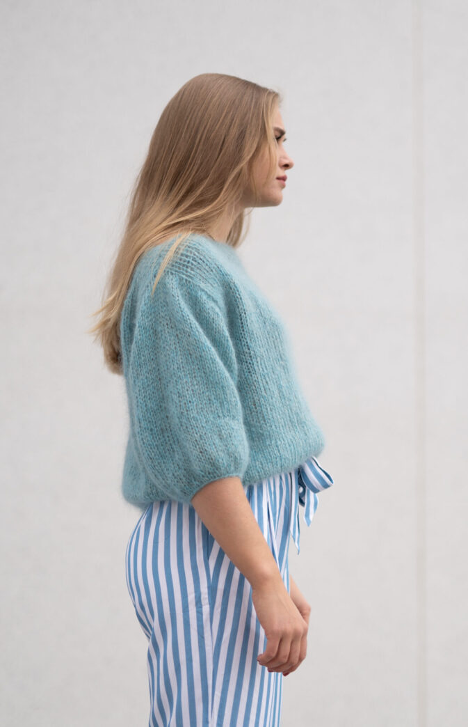 The Sky Sweater is part of the Springfling collection. We love colors, and we love mohair. Inspired by the 80s, we have created various garments with simple and pretty details that are fun to knit, and amazing to wear! 11 patterns available (in Norwegian) Springfling knitting booklet (Springfling Knitting Booklet )