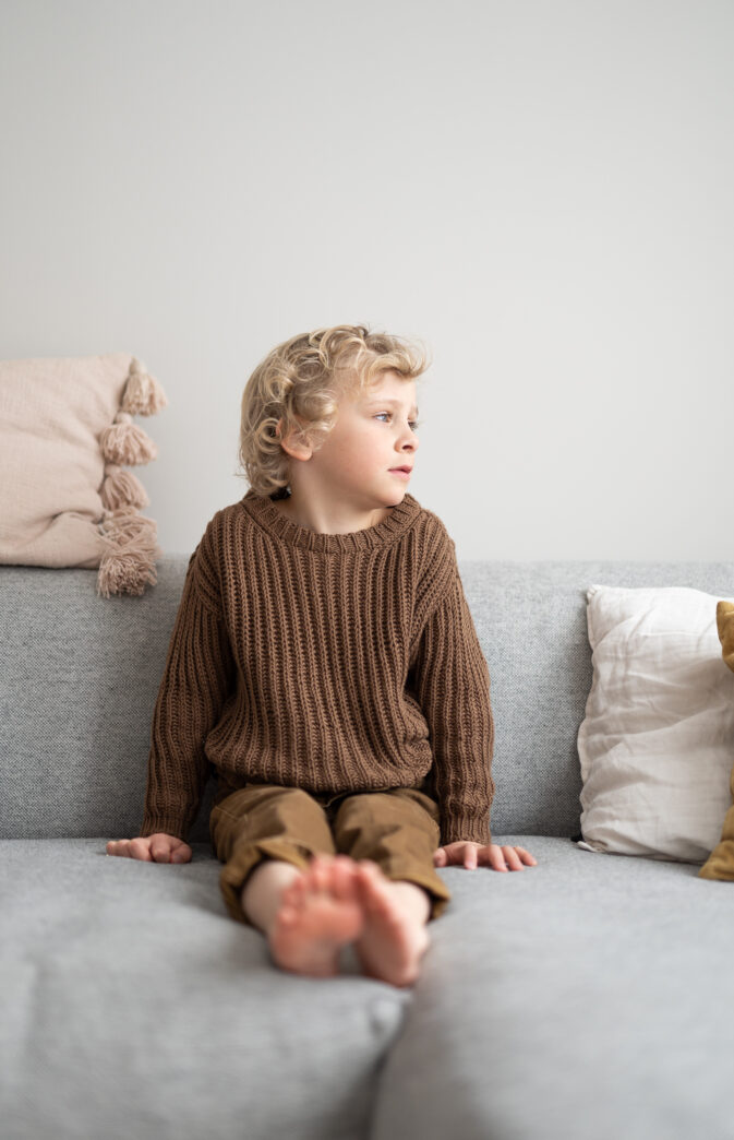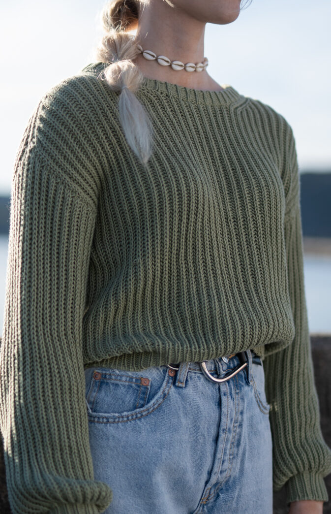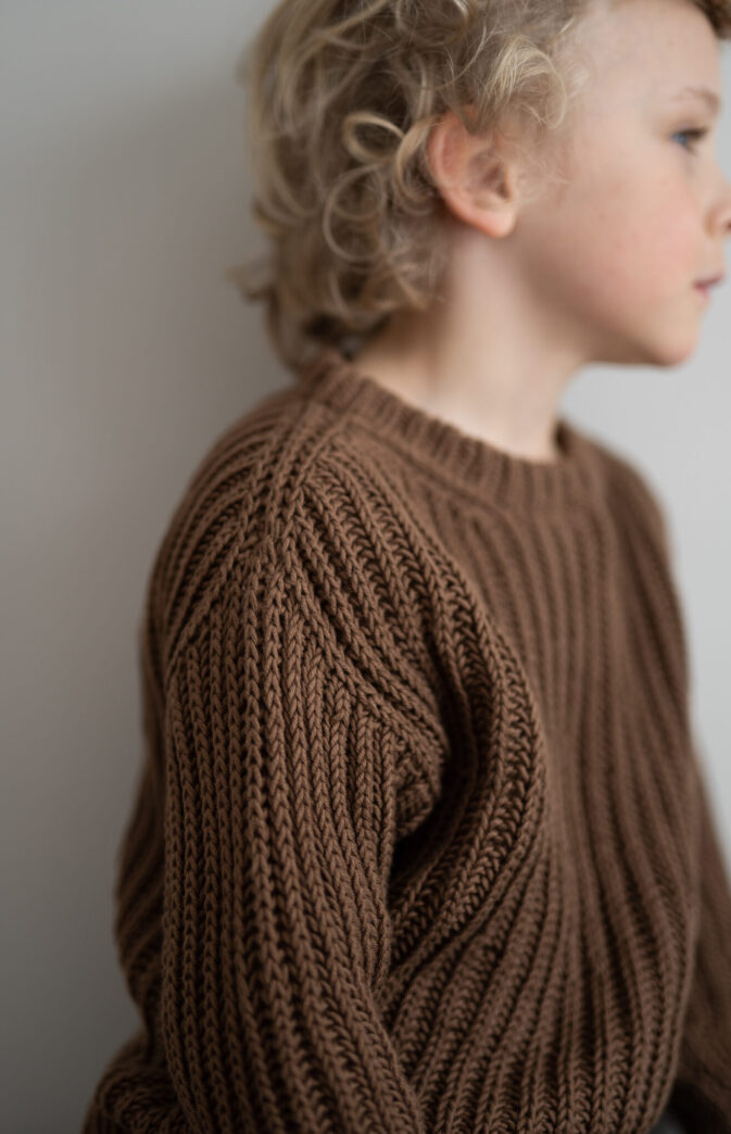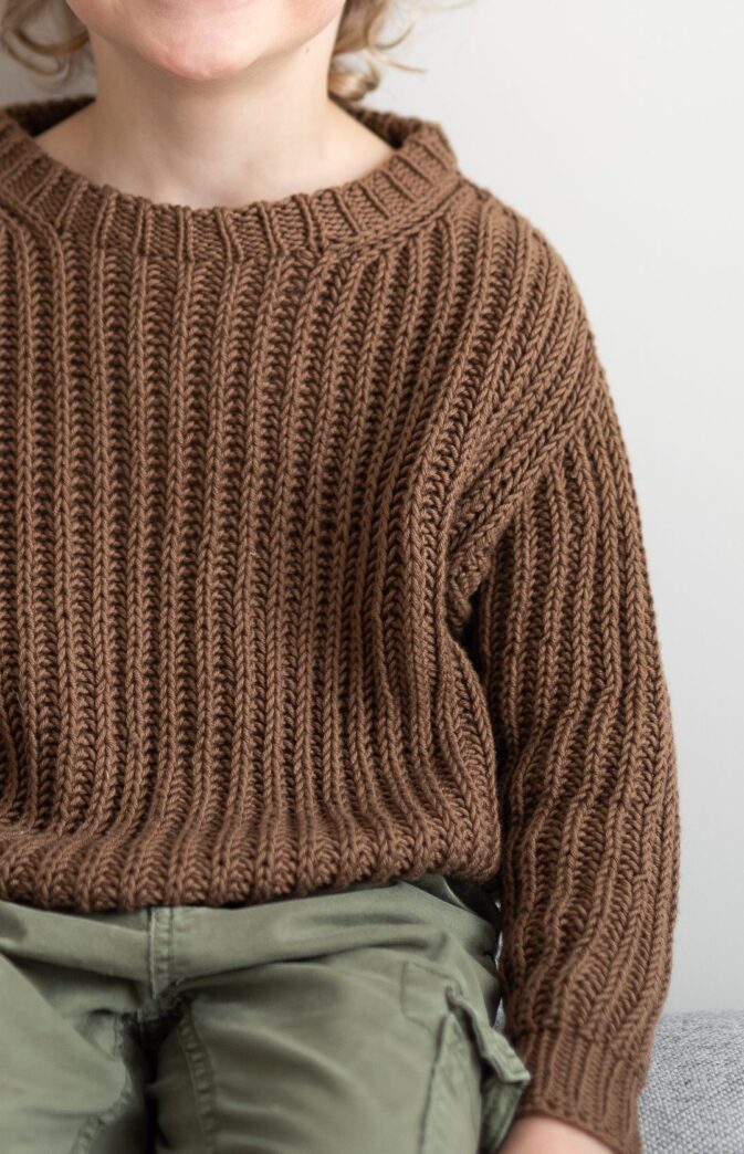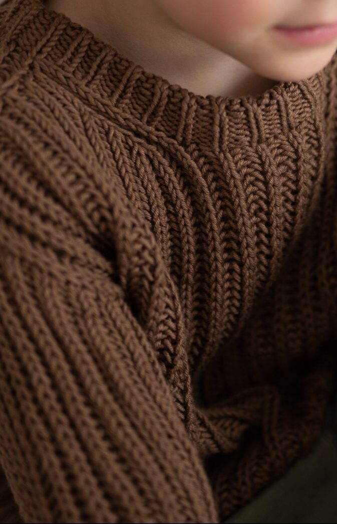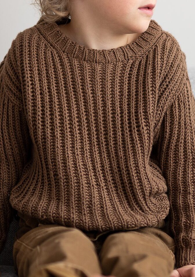 Strikkepakke med garn og gratis digital strikkeoppskrift. Strikk til barn i deilig bomull. Den mykeste genseren du noensinne har strikket! Patentstrikket bomullsgenser med nydelig skulderkonstruksjon. Genser strikkes ovenfra og ned. Detaljert trinnvis beskrivelse og bilder inkludert i mønsteret.