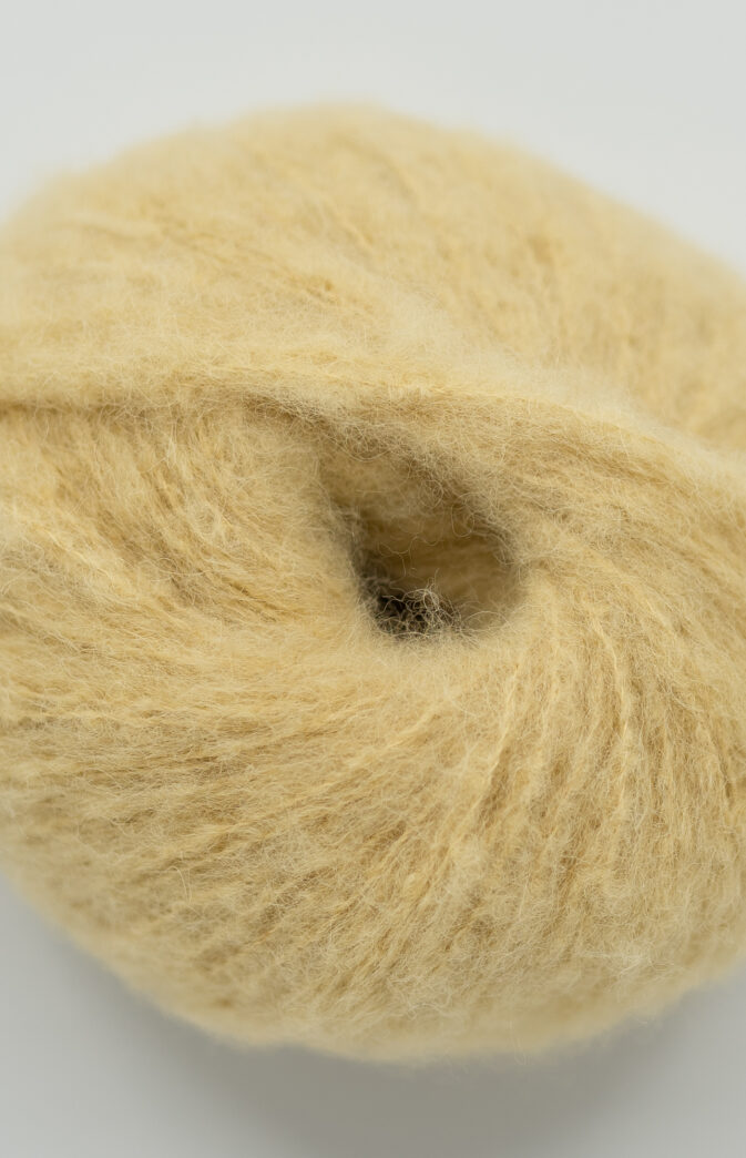 BonBon er børstet og holdes sammen av en sterk tynn nylontråd. Blek gul / gulbeige farge.