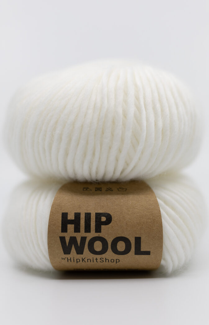 Hip Wool 100 % høylands ull. Supermykt og luftig garn. Blek hvit farge.