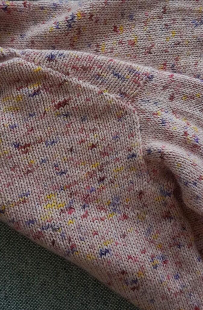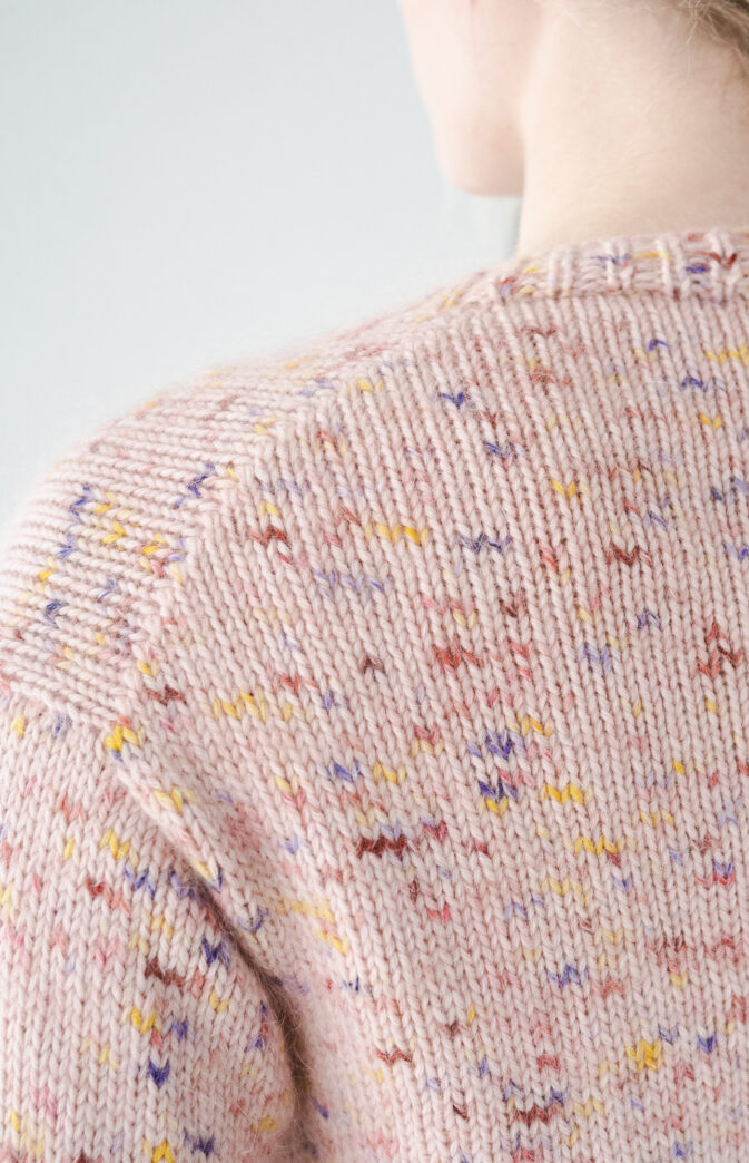 Du starter med å legge opp masker i nakken på bakstykket. Her strikker du frem og tilbake mens du øker i hver side. Forstykkene strikkes først hver for seg, du strikker opp masker fra bakstykket. Når du har laget halsutrigning strikkes forstykket i ett. For – og bakstykket strikkes sammen etter ermåpning og du fortsetter rundt i omgang nedover bolen. Ermene strikkes ovenfra og ned ved at du strikker opp masker i ermeåpning.