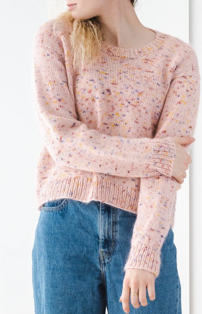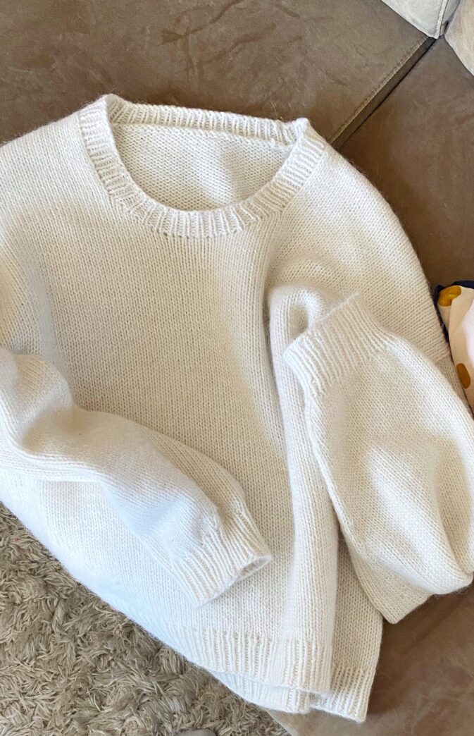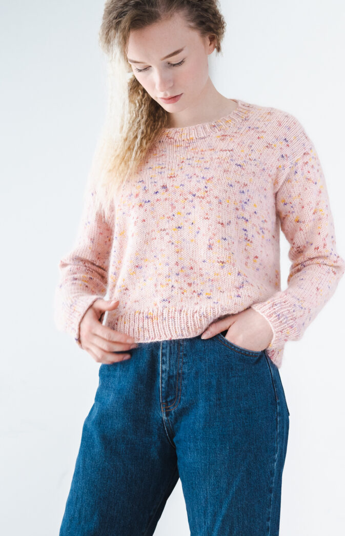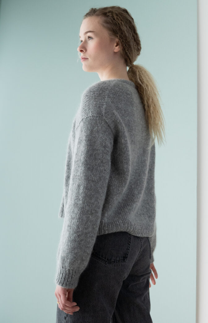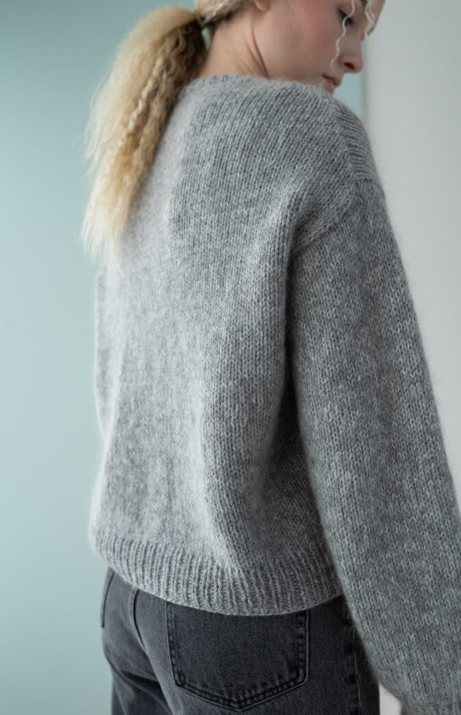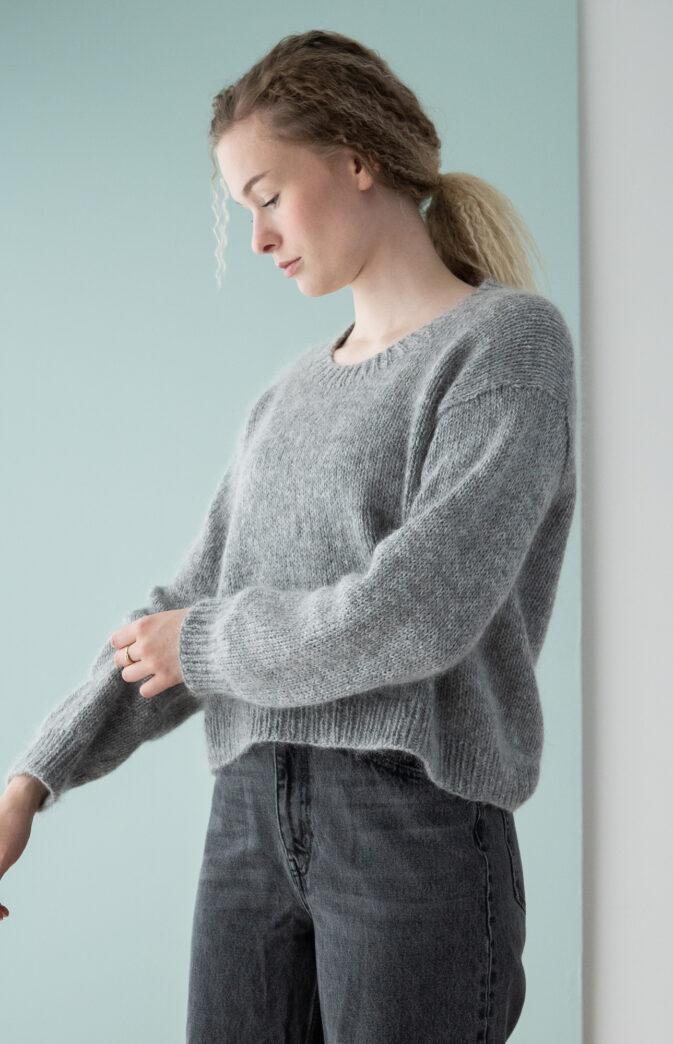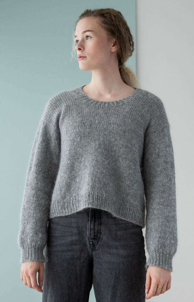 Strikkepakke med garn og gratis digital strikkeoppskrift. Nydelig hverdagsgenser som passer like godt til ett par jeans som over en kjole. Genseren strikkes ovenfra og ned i en tråd Pop Merino holdt sammen med en tråd Hip Mohair. Den har normal passform og lengde.