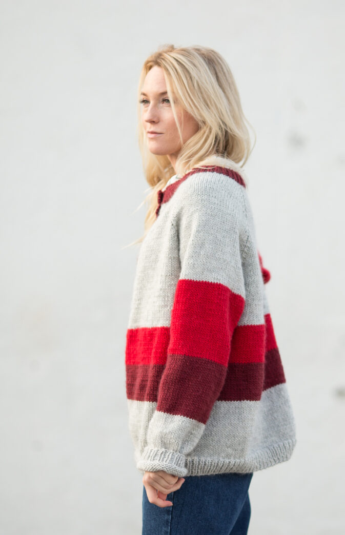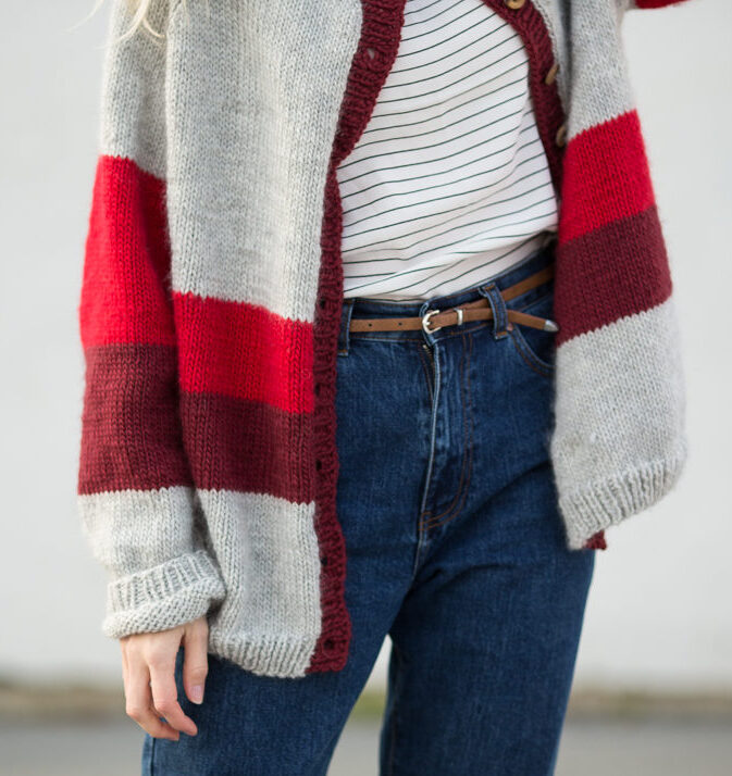 Strikkeoppskrift på jakke til dame. Fin og varm hverdagsjakke som skal strikkes både med og uten striper.