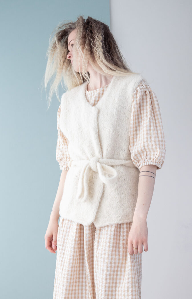 Strikkepakke med garn og gratis digital strikkeoppskrift. Strikket vest  inspirert av en av våre favoritt eventyr,«3 Nøtter til Askepott». Vesten strikkes ovenfra og ned med 2 tråder Wild. Enkel oppskrift med lang og vid passform, slik at du kan ha tykkere gensere under. Om du ønsker den mer tettsittende kan du gå ned en størrelse fra den du vanligvis bruker. Modell også avbildet med Wildling Hoodie, Votter og Daydream sweater.