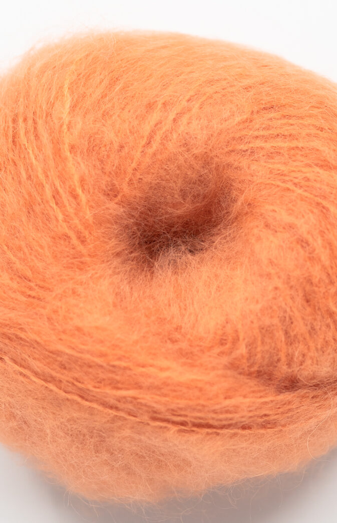 Gir et delikat og pusete resultat. Mohairgarnet er mykt, silkeaktig og luftig. Holder deg varm om vinteren og kjølig om sommeren. Perfekt i kombinasjon med merino ull.