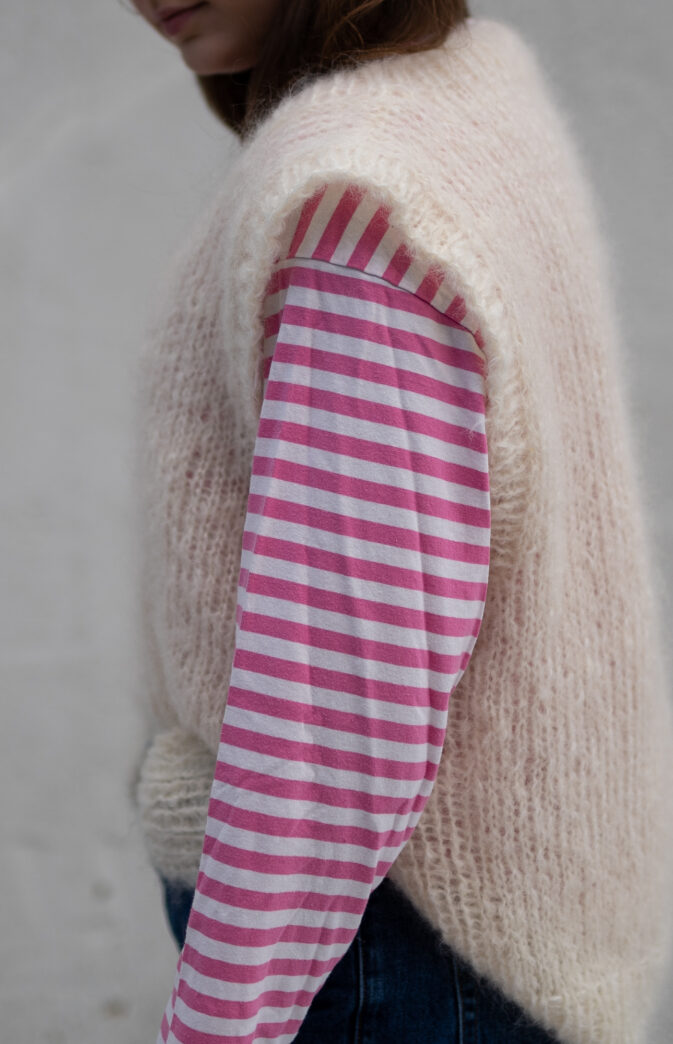 Avbildet i Fluff mohair «Snow» (str M) og «Baby Blues» (str L-XL)