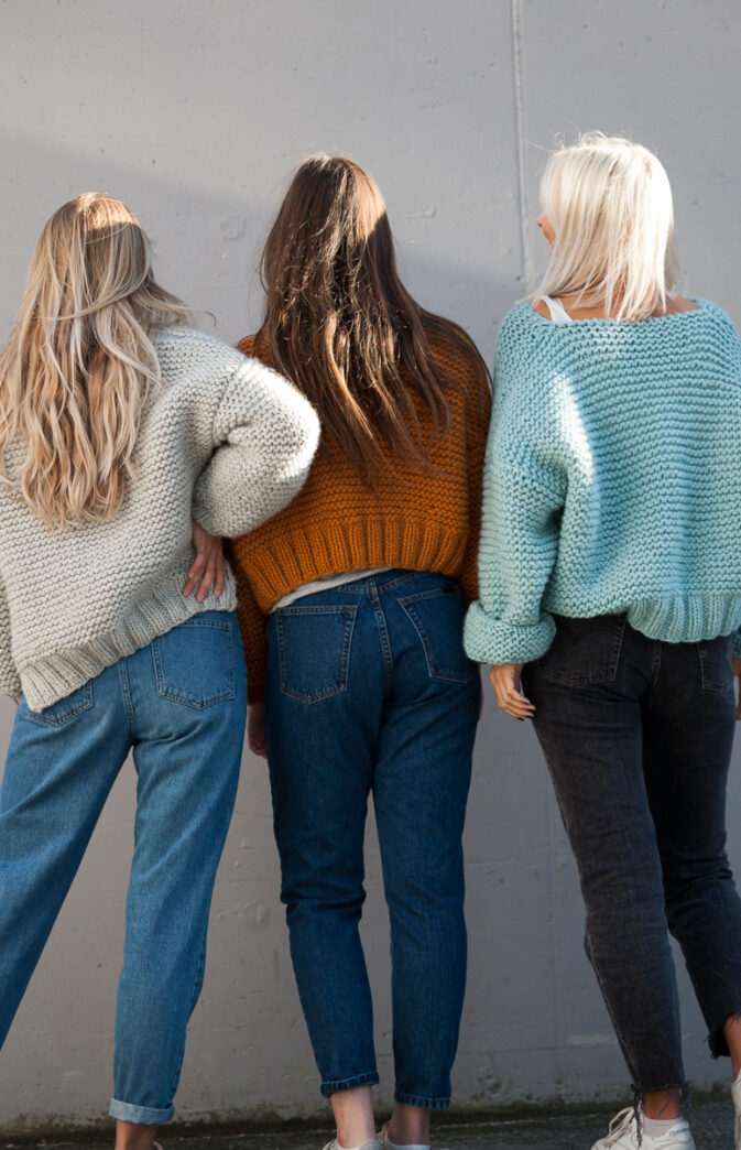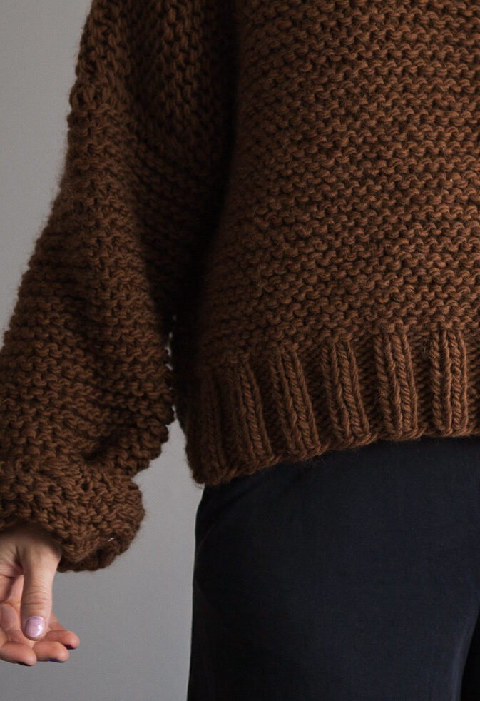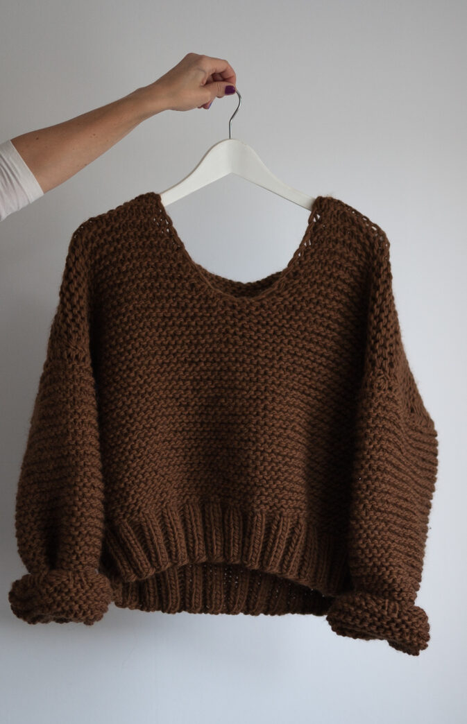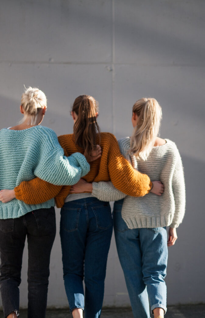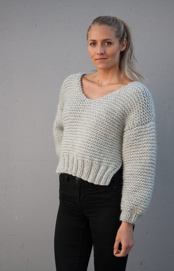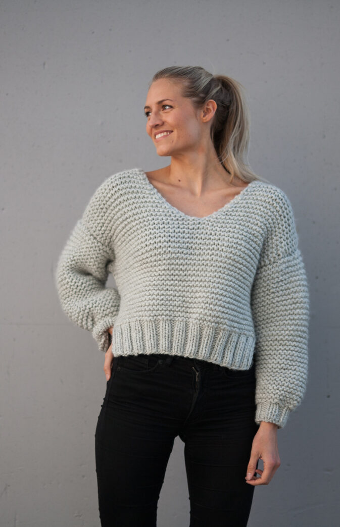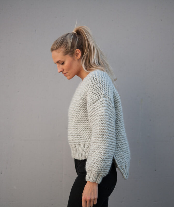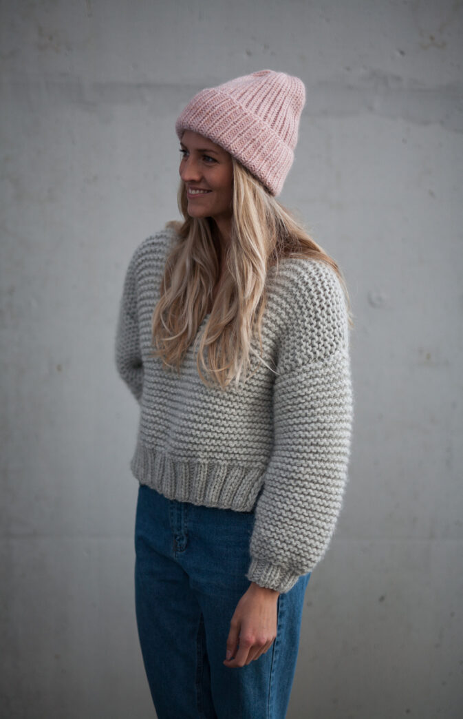 Fly High sweater – del av vår nye chunky kolleksjon. Varm og myk genser strikket med dobbel tråd Hip Wool. Rask strikk- Rillestrikk på pinnestørrelse 12 mm.