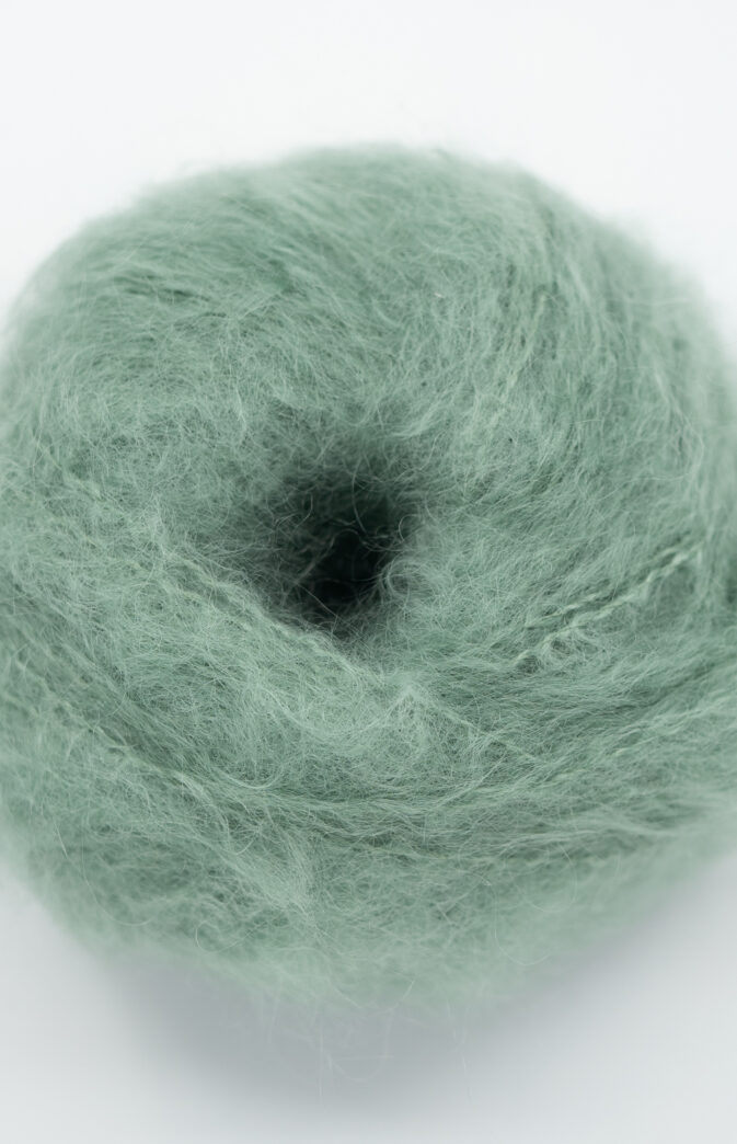 Gir et delikat og pusete resultat. Mohairgarnet er mykt, silkeaktig og luftig. Holder deg varm om vinteren og kjølig om sommeren. Perfekt i kombinasjon med merino ull.