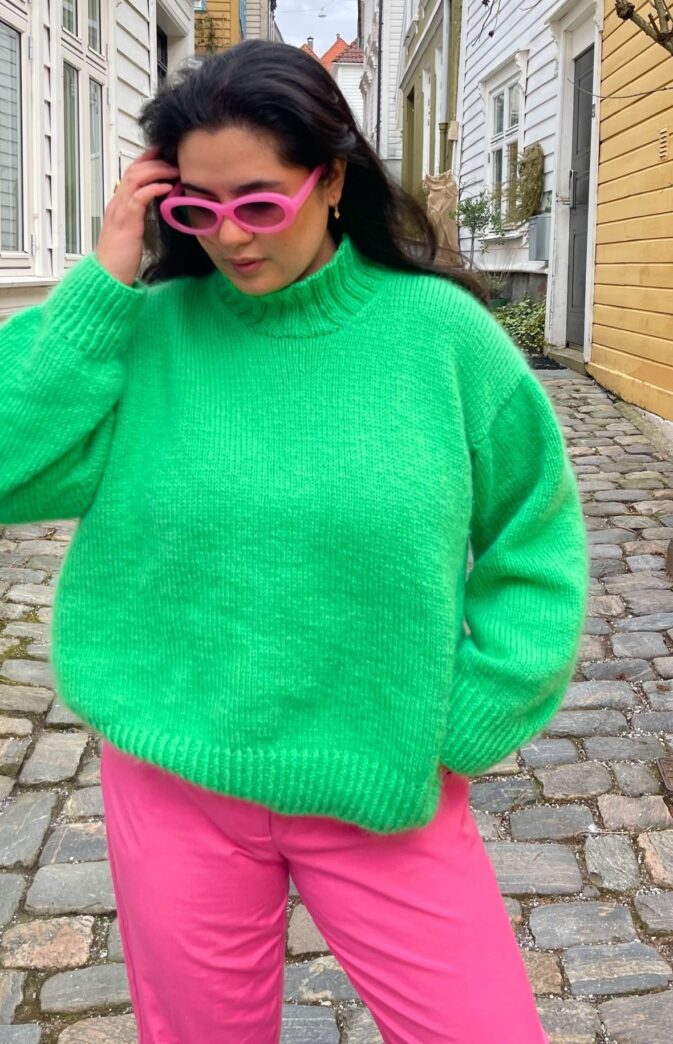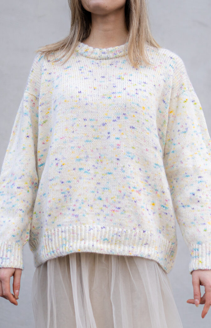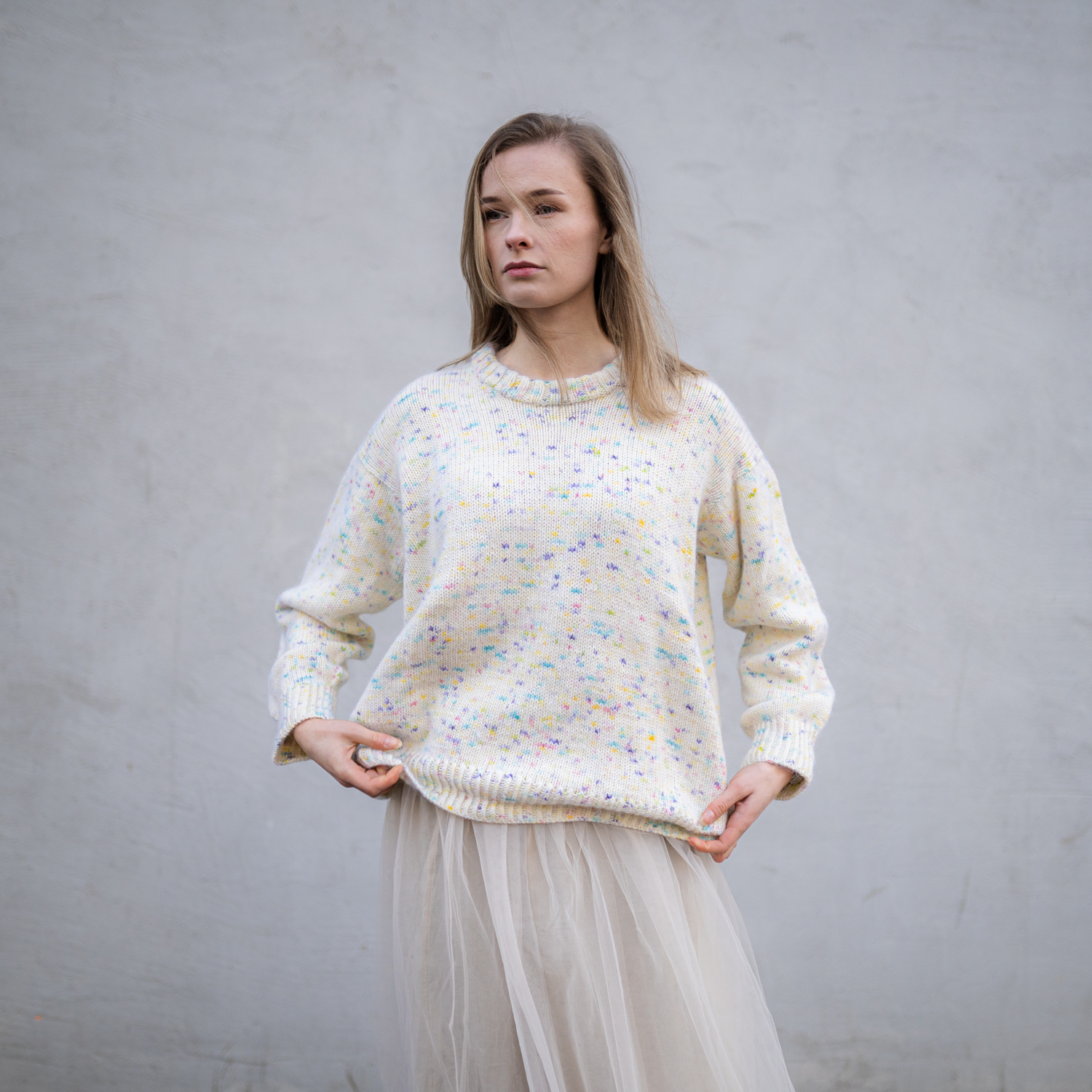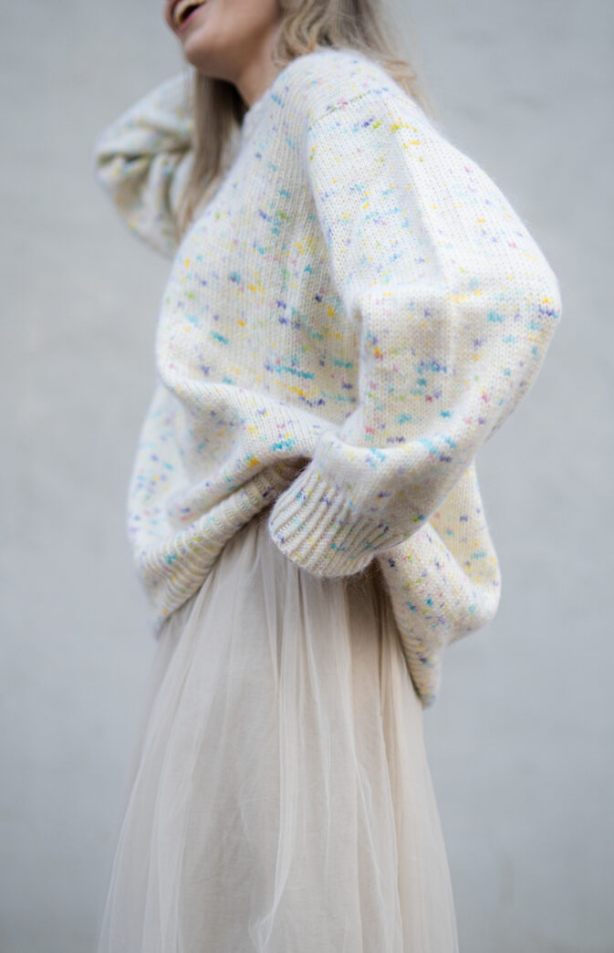 Avbildet i håndfarget Pop «Tutti frutti»med Hip Mohair «Cotton ball» (str L)