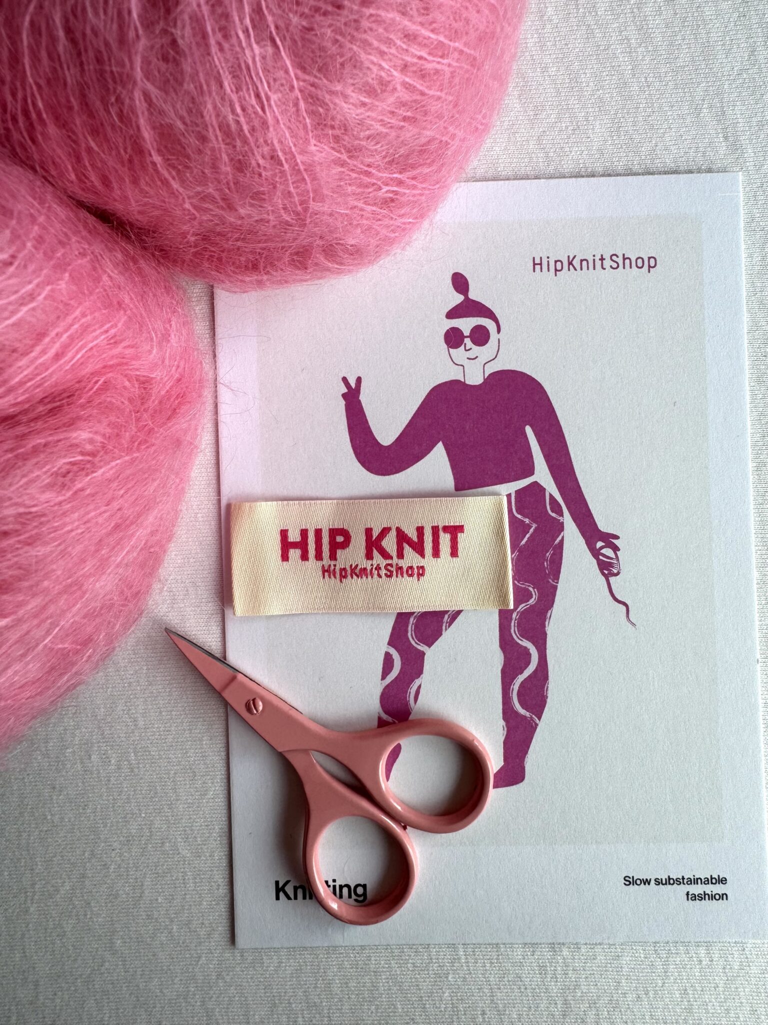 Hip Knit, HipKnitShop rosa skrift label