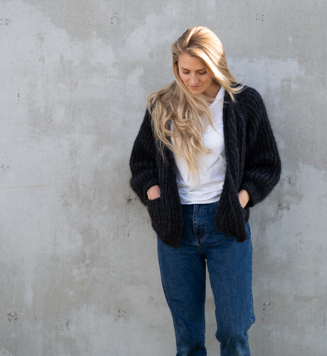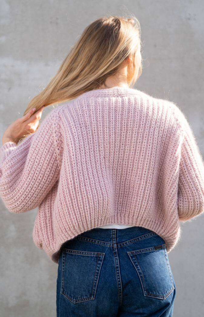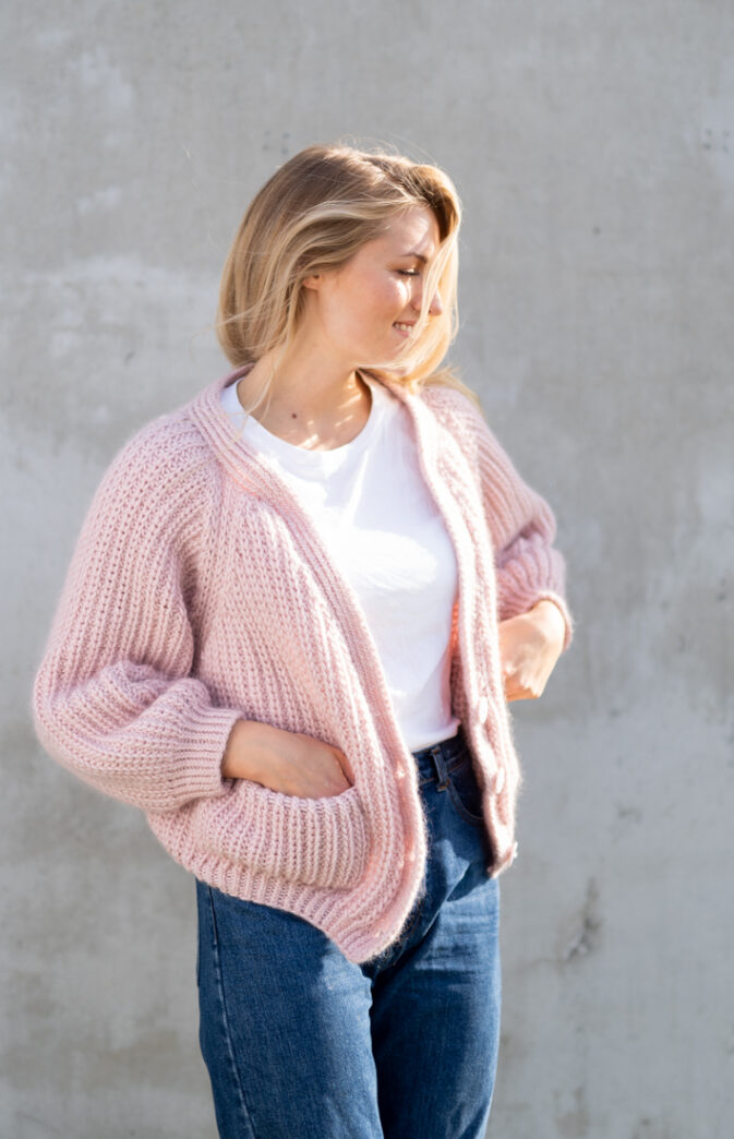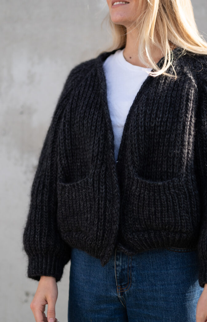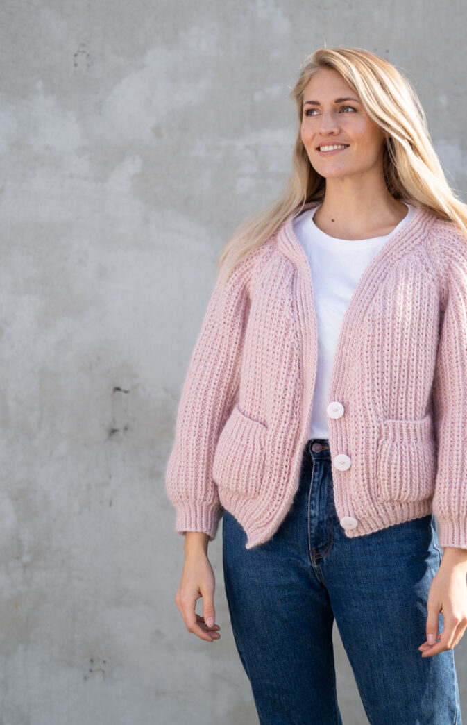 Strikkepakke med garn og gratis digital strikkeoppskrift. Vi elsker Paris – og vi elsker nydelig strikk! Kul og moderne jakke strikket i halvpatent. Bred og kort passform. Strikket i en tråd Hip Wool og en tråd Hip mohair. Den perfekte jakken over jeans eller kjole