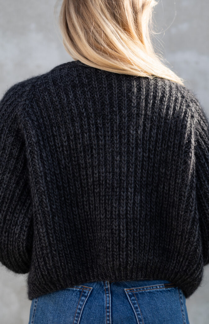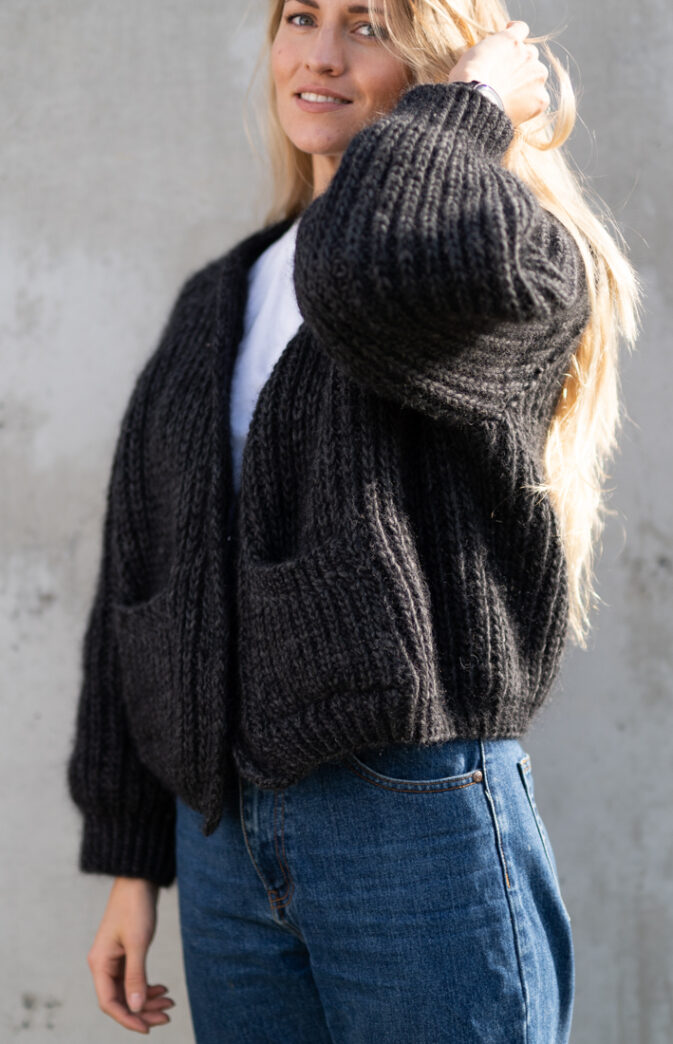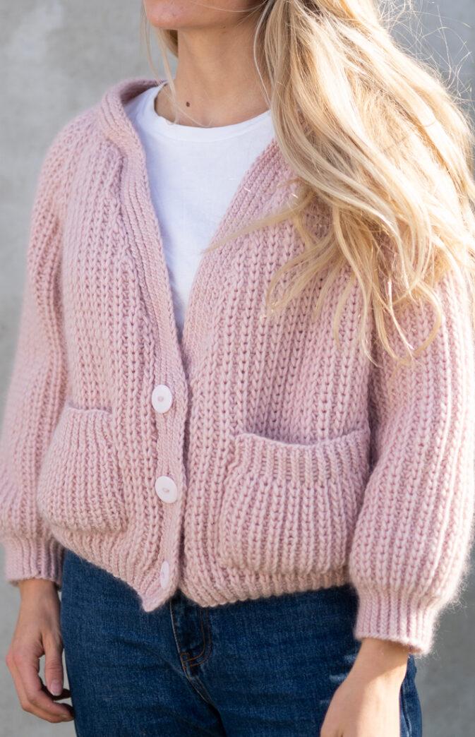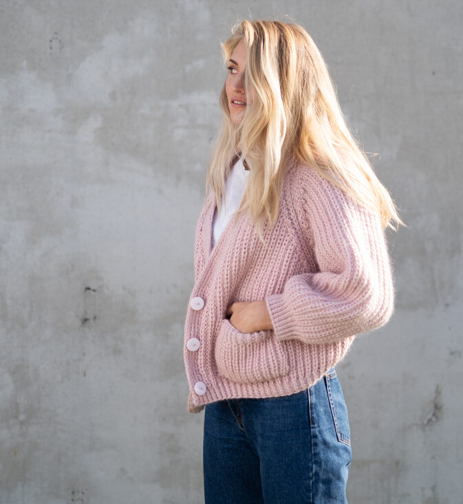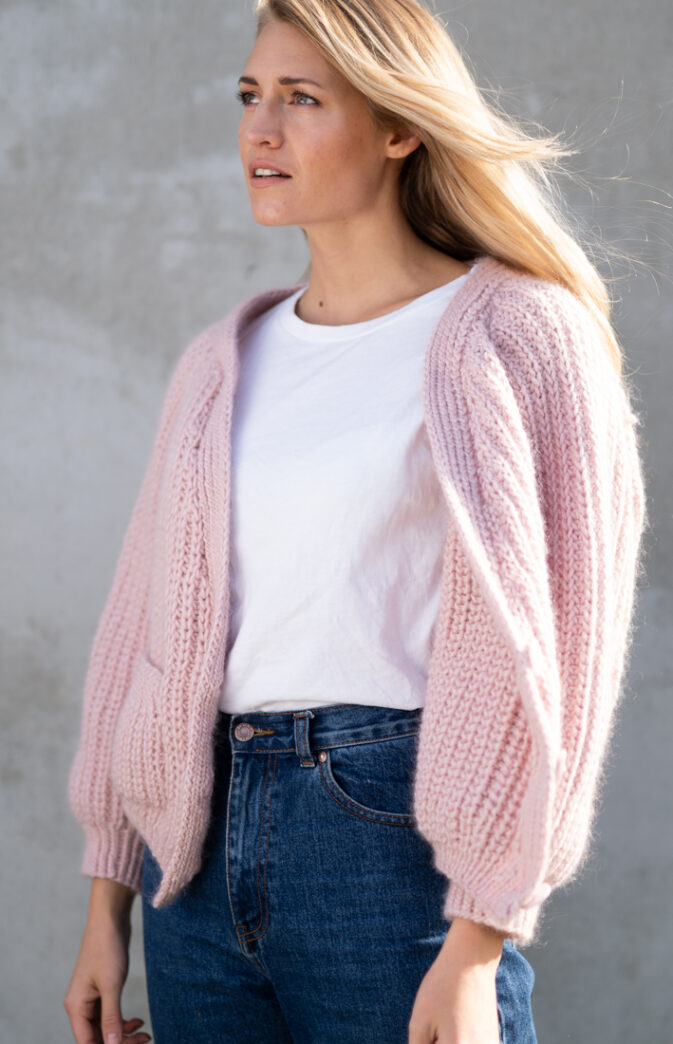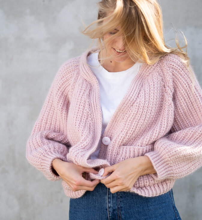 Strikkepakke med garn og gratis digital strikkeoppskrift. Vi elsker Paris – og vi elsker nydelig strikk! Kul og moderne jakke strikket i halvpatent. Bred og kort passform. Strikket i en tråd Hip Wool og en tråd Hip mohair. Den perfekte jakken over jeans eller kjole