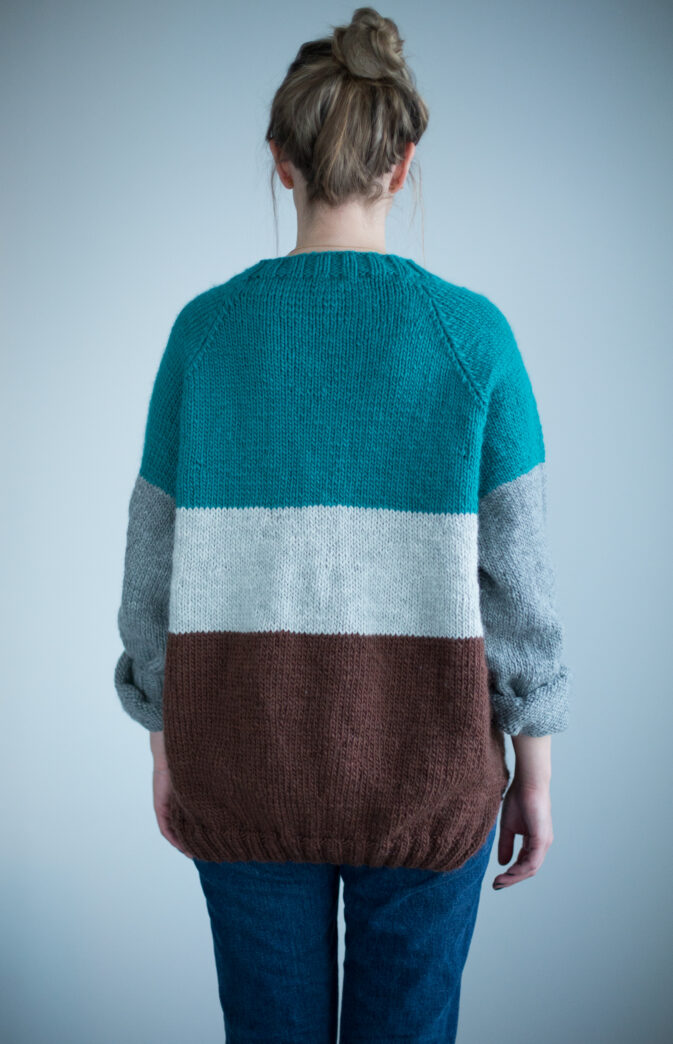 Lyst til å strikke den mørkere versjon avbildet i galleri? Velg farger: Topp «Magic forest grønn», Midten: «Foggy lys grå blanding», Nederst: Chocolate crush mørk brun, og armer: Cloudy dark grey blend.