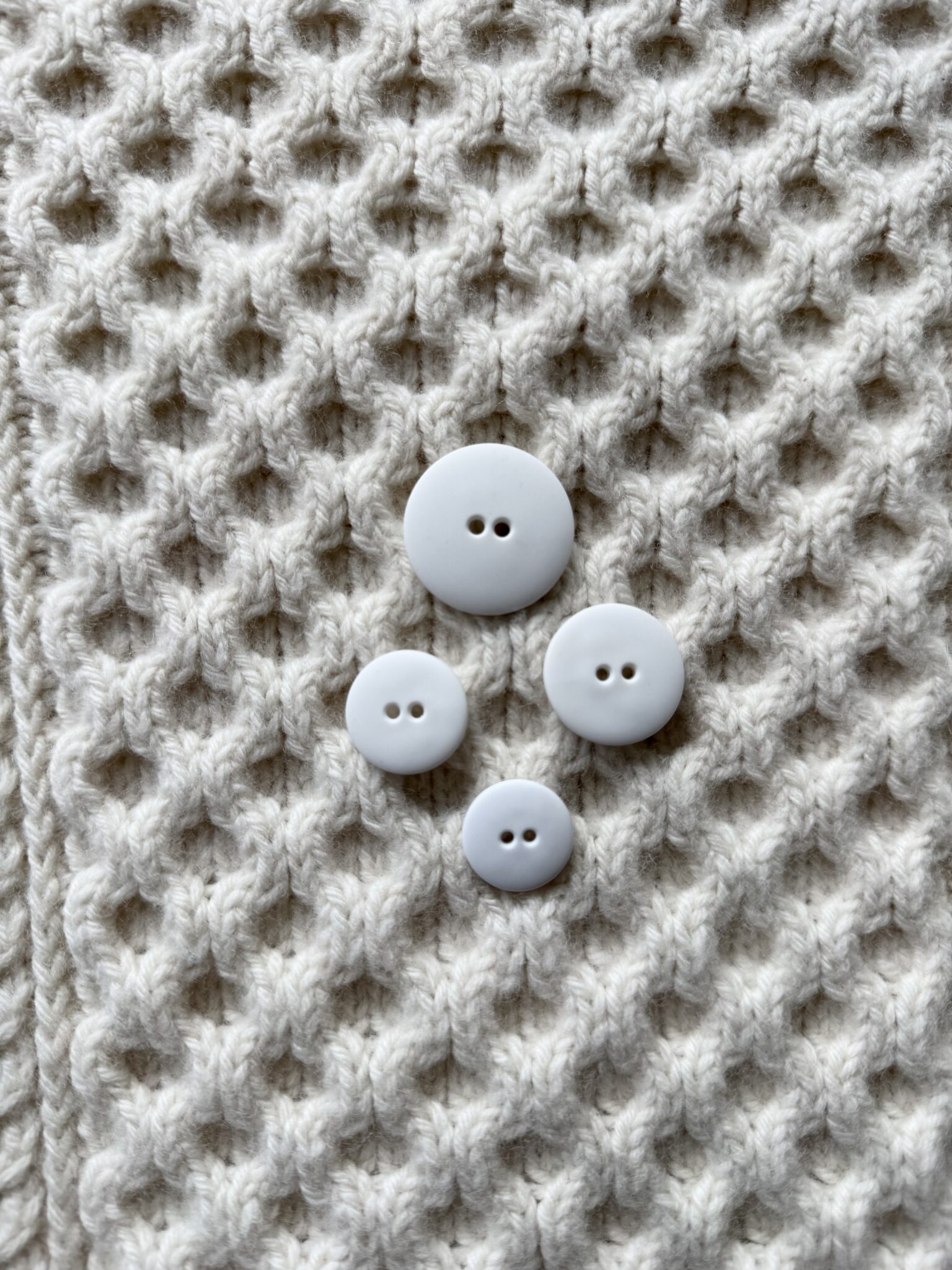 Perfekt detalje på strikkeplagg som strikkejakke.