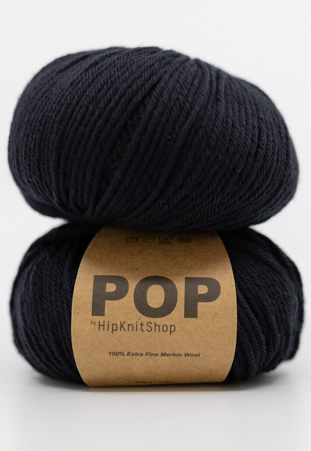 POP merino 100 % ekstra fin merinoull i sort. Supermykt og behagelig mot huden. Lett å strikke med. Merinoull er pustende og slitesterk, holder godt i form og fasong over tid.
