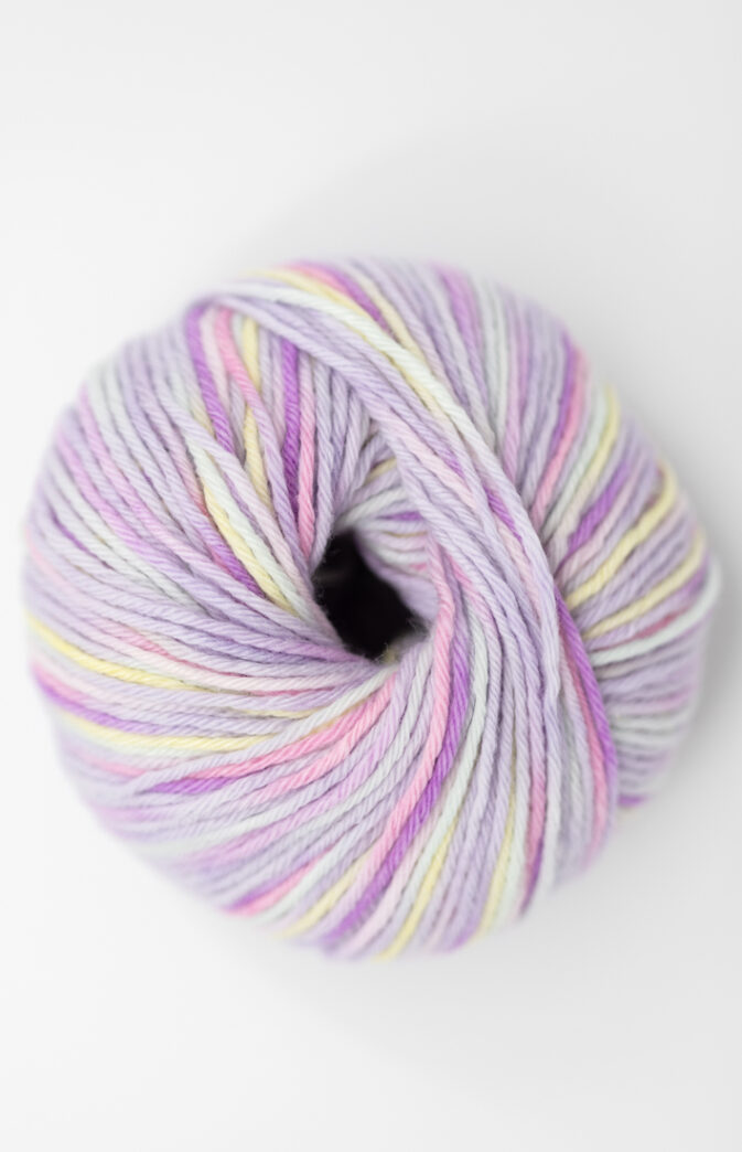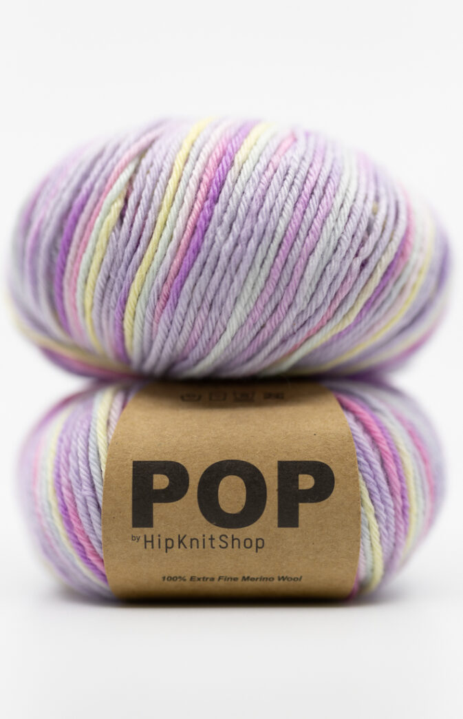 POP merino 100 % ekstra fin merinoull. Håndfarget lys lilla base og pastellfarger. Supermykt og behagelig mot huden. Lett å strikke med. Merinoull er pustende og slitesterk. Holder deg varm og komfortabel.