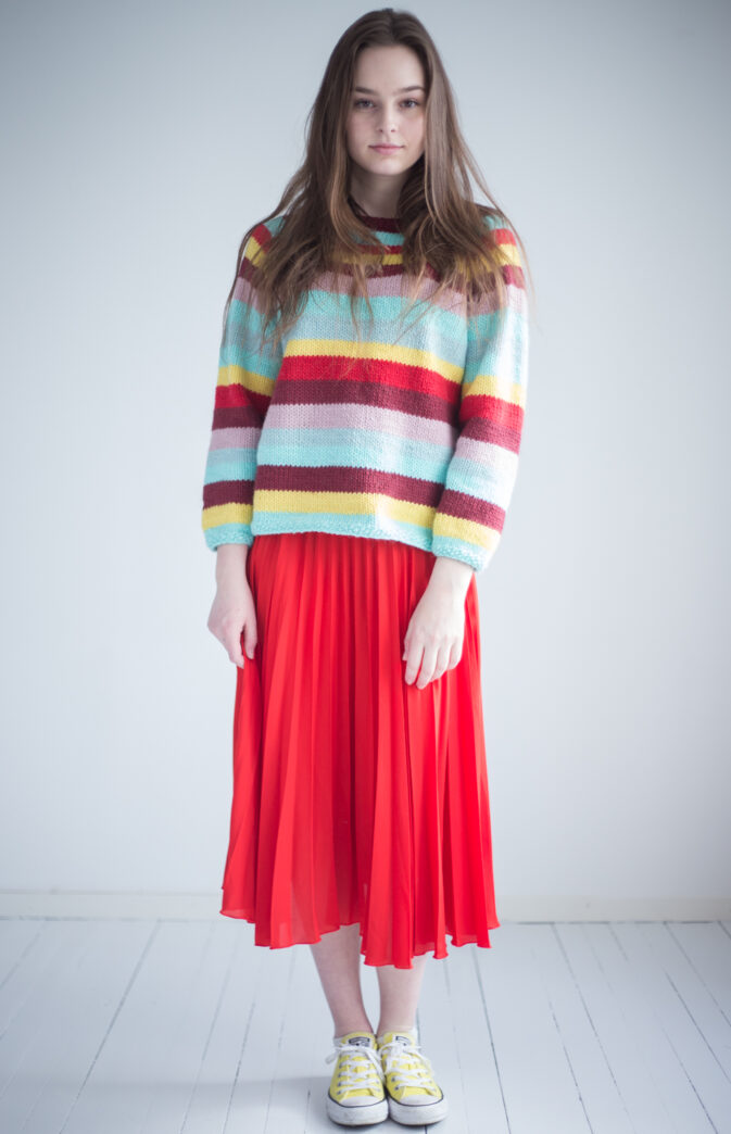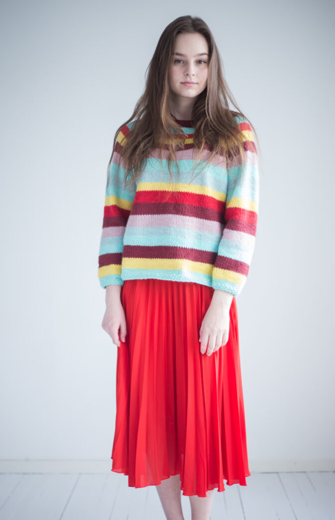 Striper og farger – Vi liker dem sammen! Denne flerfargede genseren er gøy og fin å strikke, med herlige farger.