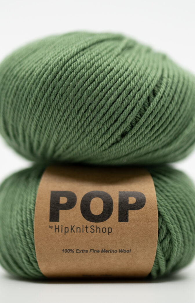 POP merino 100 % ekstra fin merinoull i oliven grønn. Supermykt og behagelig mot huden. Lett å strikke med. Merinoull er pustende og slitesterk, holder godt i form og fasong over tid.