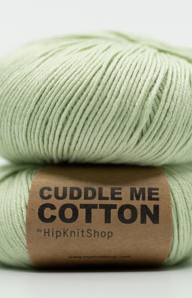 Cuddle Me Cotton er vårt økologiske bomullsgarn som består av 100 % pima bomull. Lys grønn/ pastellgrønn farge.