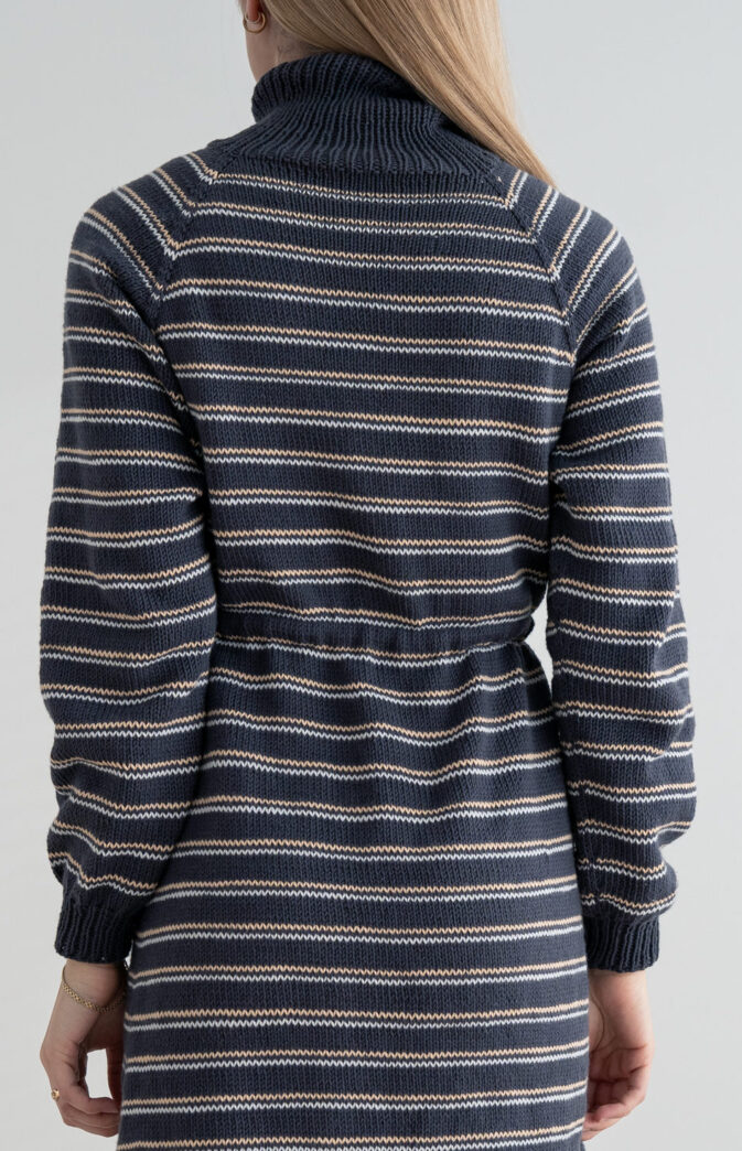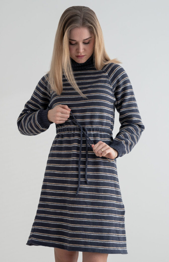 Avbildet er mørk kjole Cuddle Me Cotton "Deep Sea", striper i "Beach Bum" og "Mist" (str S)