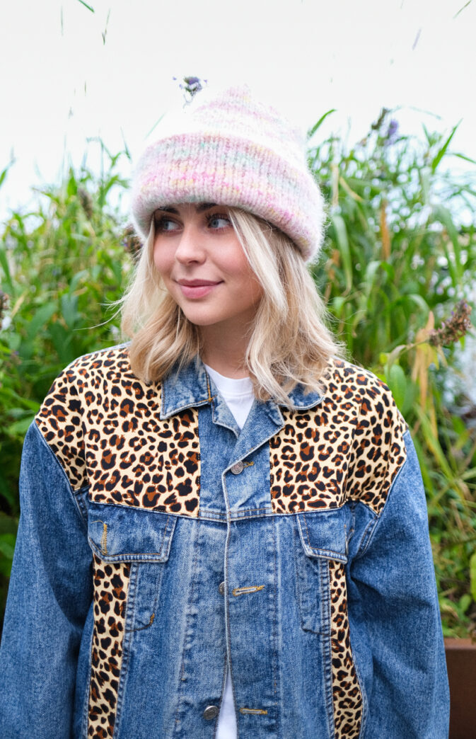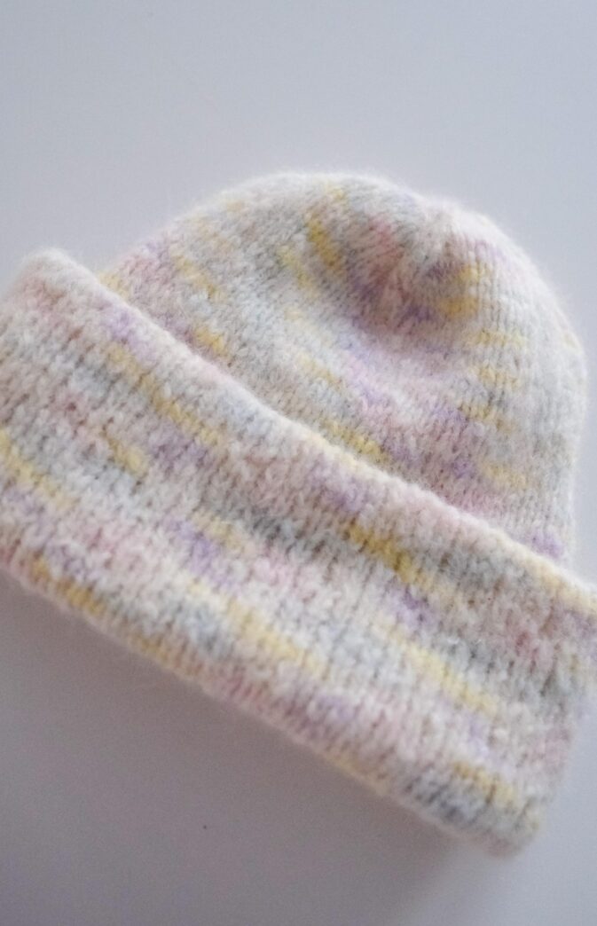 Digg, stor og fluffy lue. Oppskriften inneholder to versjoner – en tynn versjon strikket i en tråd BonBon holdt sammen med en tråd Hip Mohair og en tykk versjon strikket i en tråd BonBon holdt sammen med en tråd Hip Mohair. Du starter nederst og strikker deg oppover. Kanten brettes dobbel og strikkes sammen for en tykk og god brettekant som holder seg i fasong.