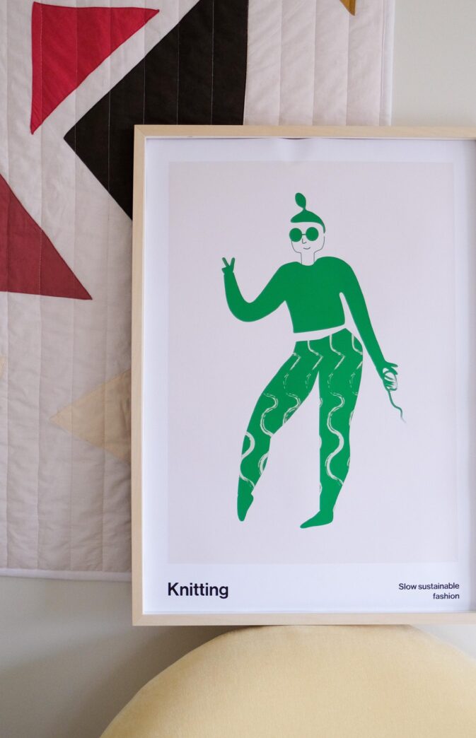 Kul poster til bildeveggen din. Kommer i eksklusiv matt papirkvalitet. Farge: Nude & grønn. Tekst på bildet «Knitting» og «Slow sustainable fashion».