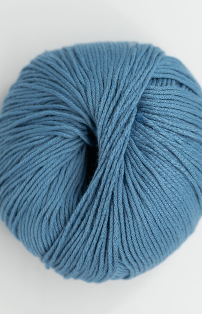 Cuddle Me Cotton er vårt økologiske bomullsgarn som består av 100 % pima bomull. Ren mellomblå farge.