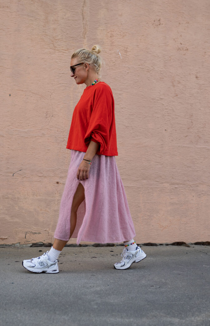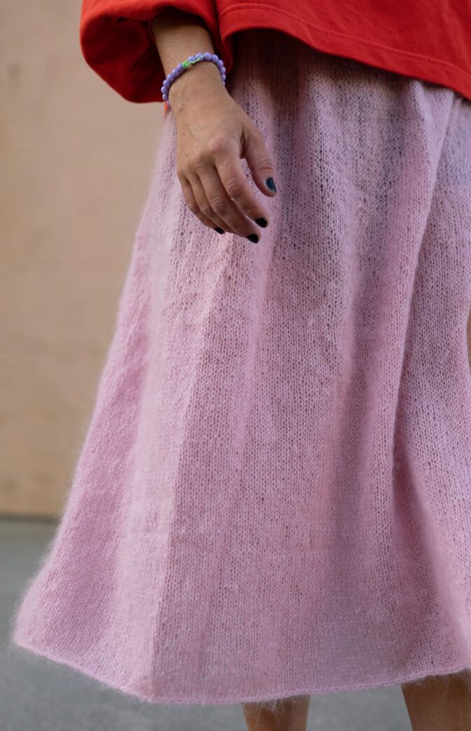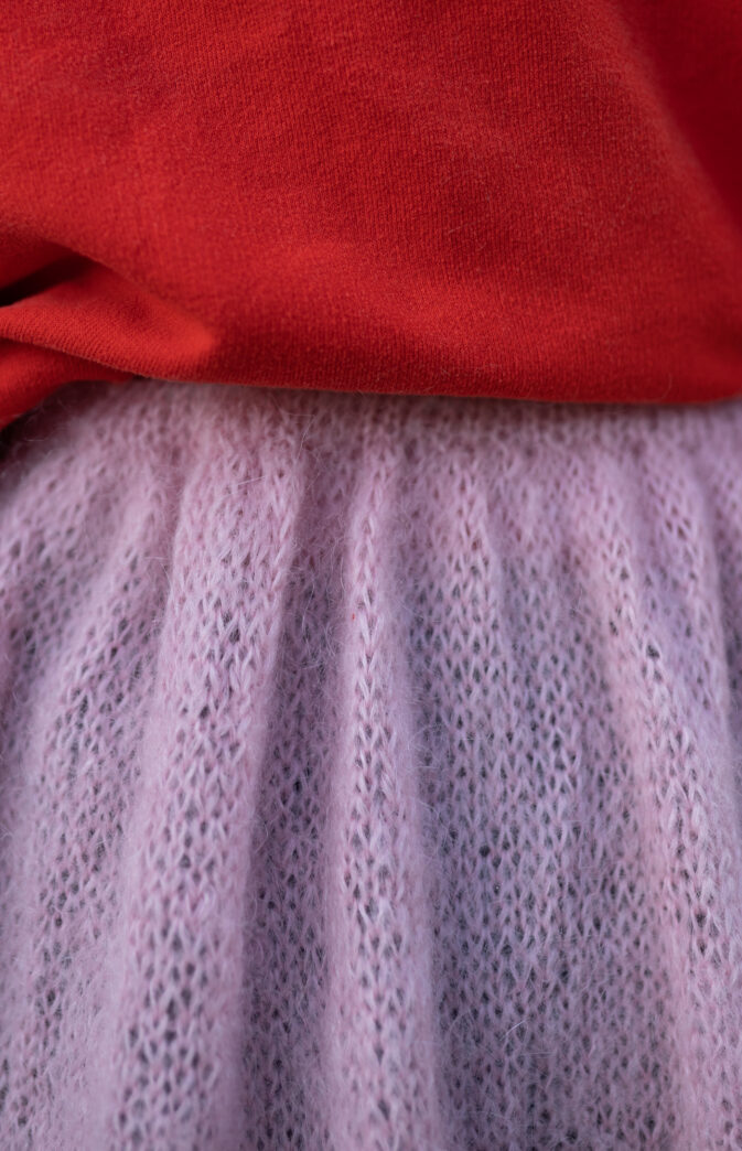 Strikkepakke med garn og gratis digital strikkeoppskrift. Nydelig strikket skjørt fra HipKnitShop. Tyllskjørtet er luftig og lett, strikket i Hip Mohair. Velg om du vil strikke kort eller lang versjon – med eller uten splitt i siden. Skjørtet strikkes ovenfra og ned. Elastisk strikk i midje. Strikkes først rundt i omgang, frem og tilbake når du starter med splitt.