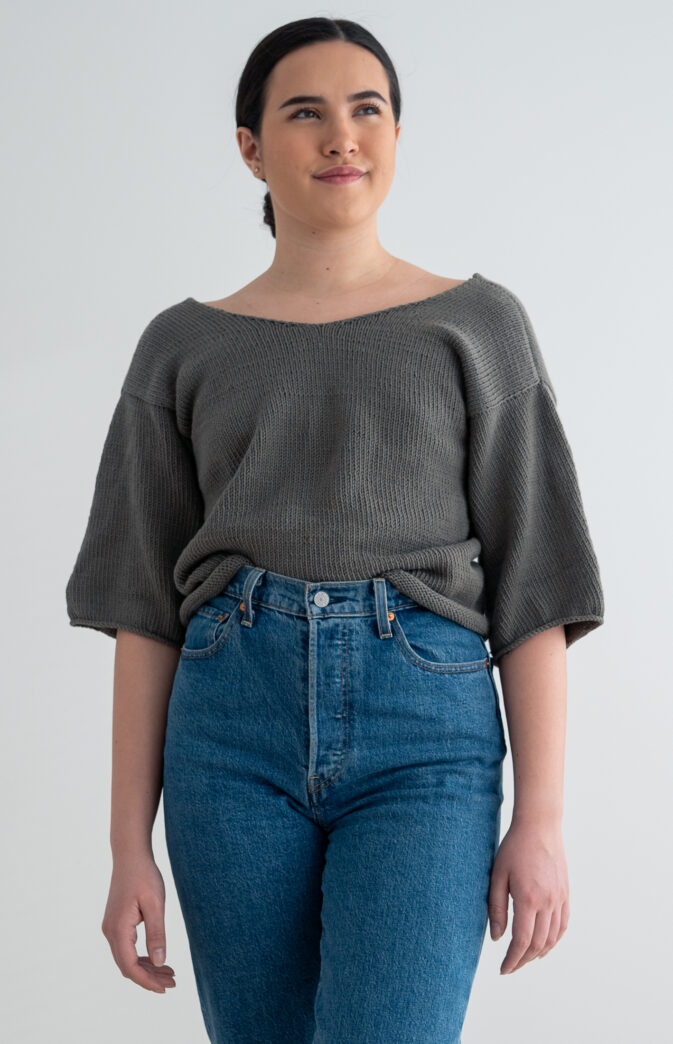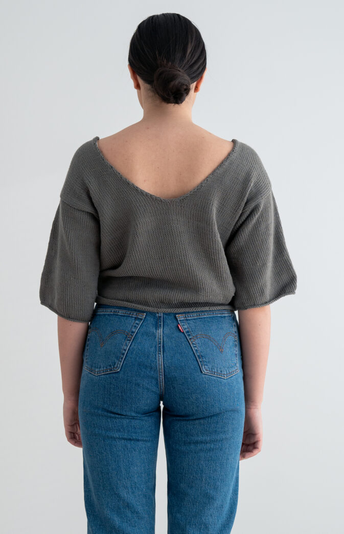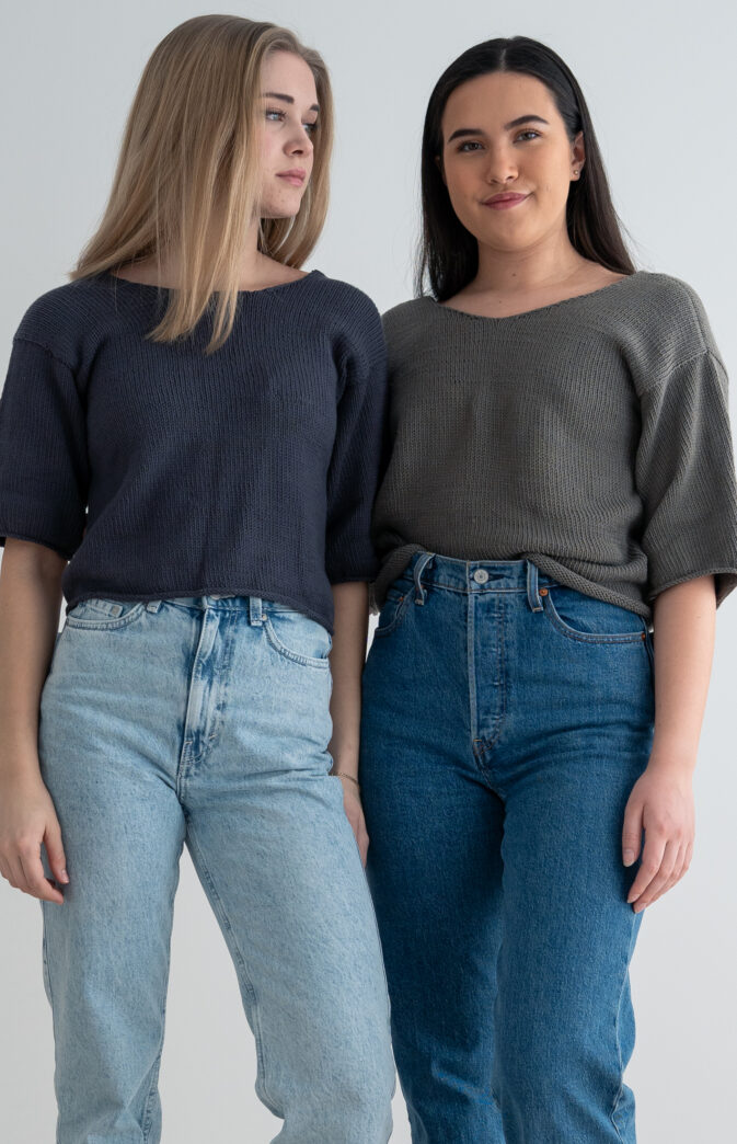 Strikkepakke med garn og gratis digital strikkeoppskrift. Sommerstrikk i bomull. Vår nydelige genser med åpen rygg som digg deilig sommertopp! Freya er en bomullsgenser / topp med utringning i rygg. Strikkes nedenfra og opp rundt i omgang. Når det startes på halsutringning strikkes den frem og tilbake. Ermer strikkes ovenfra og ned ved å strikke opp masker i ermeåpning på bol. Velg mellom rund hals og V-hals fremme i hals.