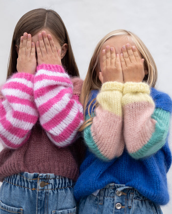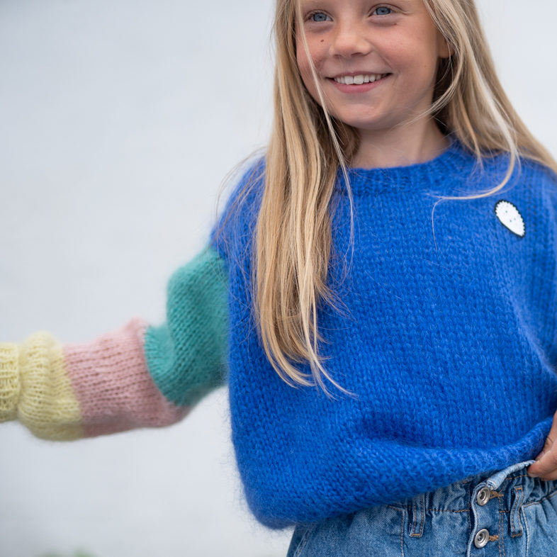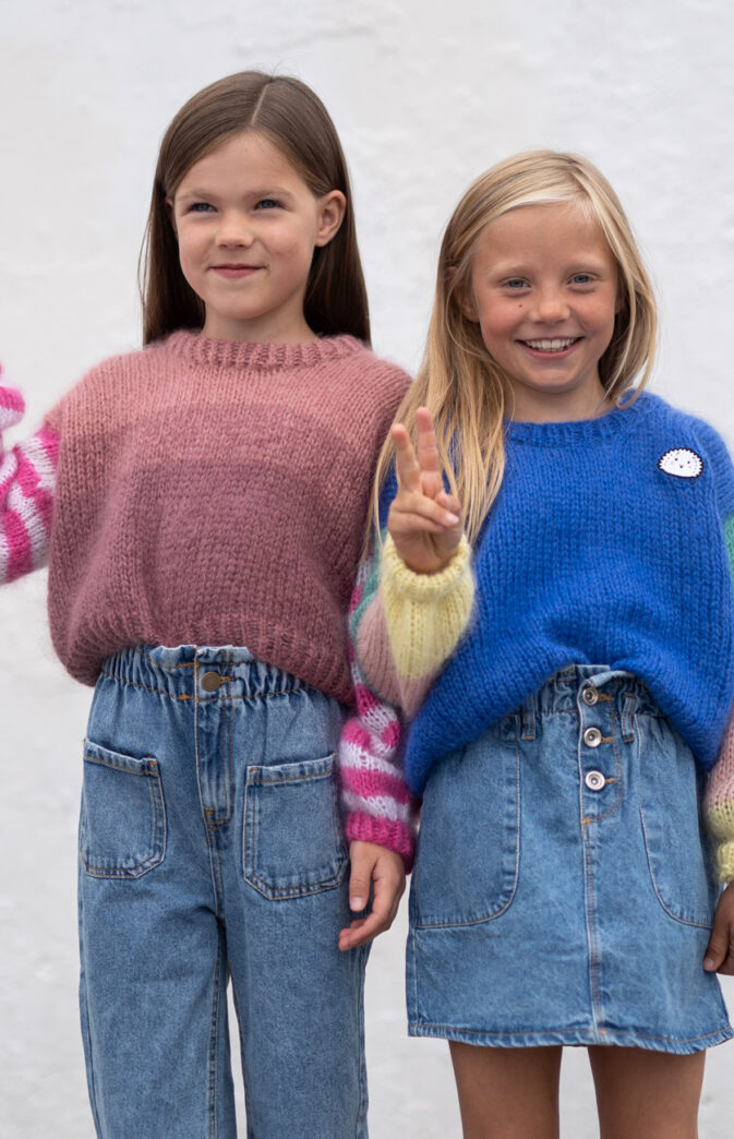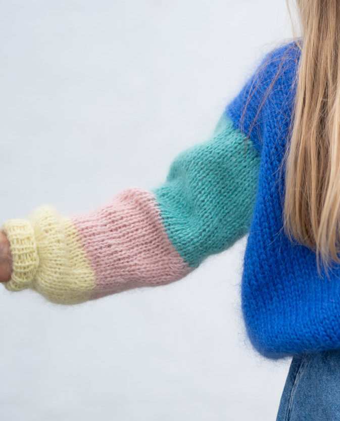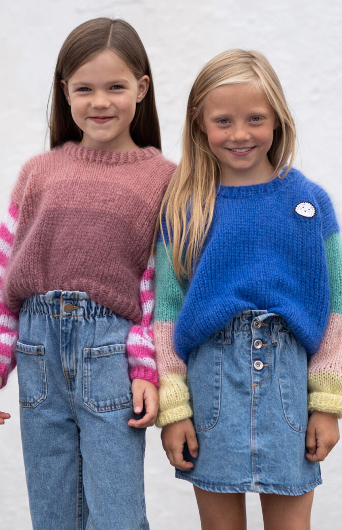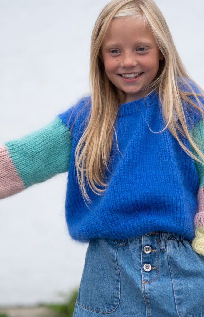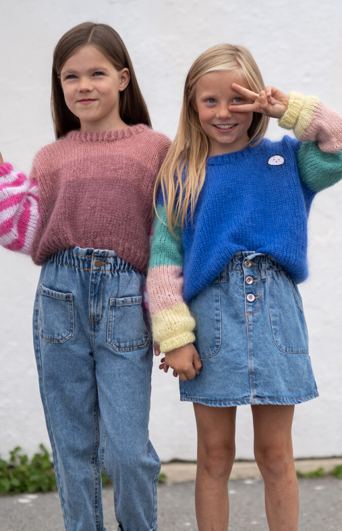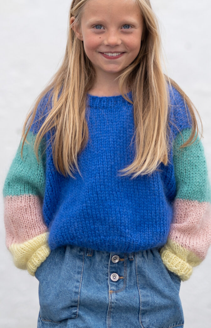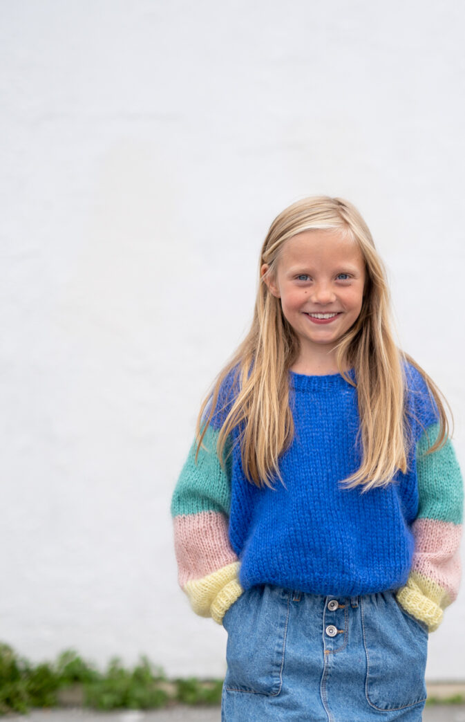Avbildet i Hip Mohair "Bubbly Blue", Stripe 1: "Minty Dreams", 2: «Just peachy» 3: «Lemonade» (str 7-9 år på jente 8 år)