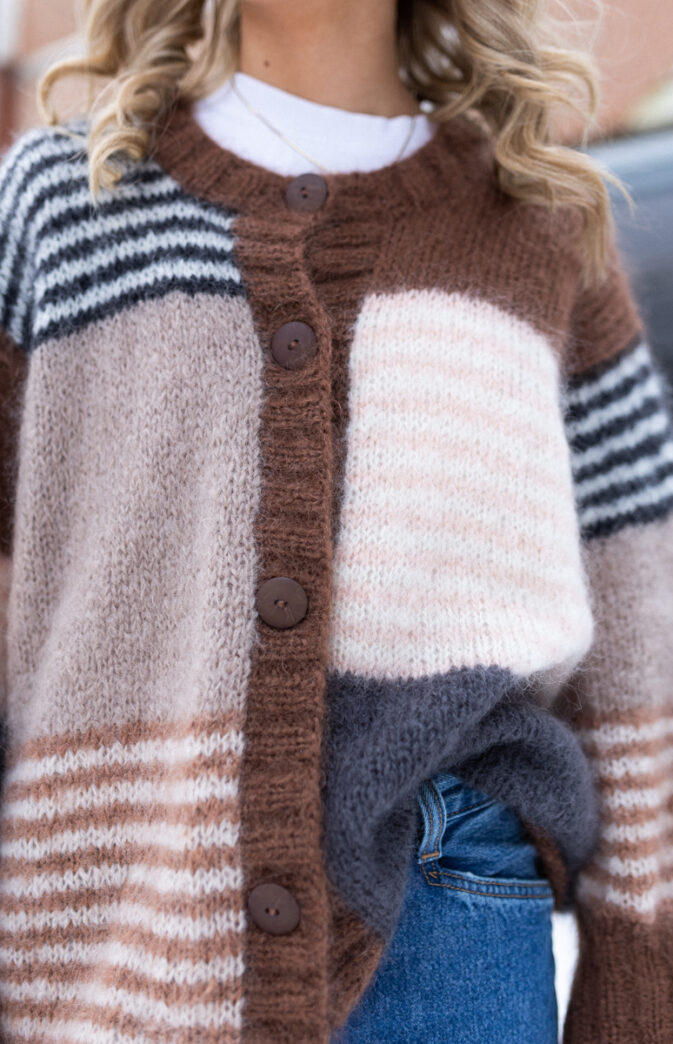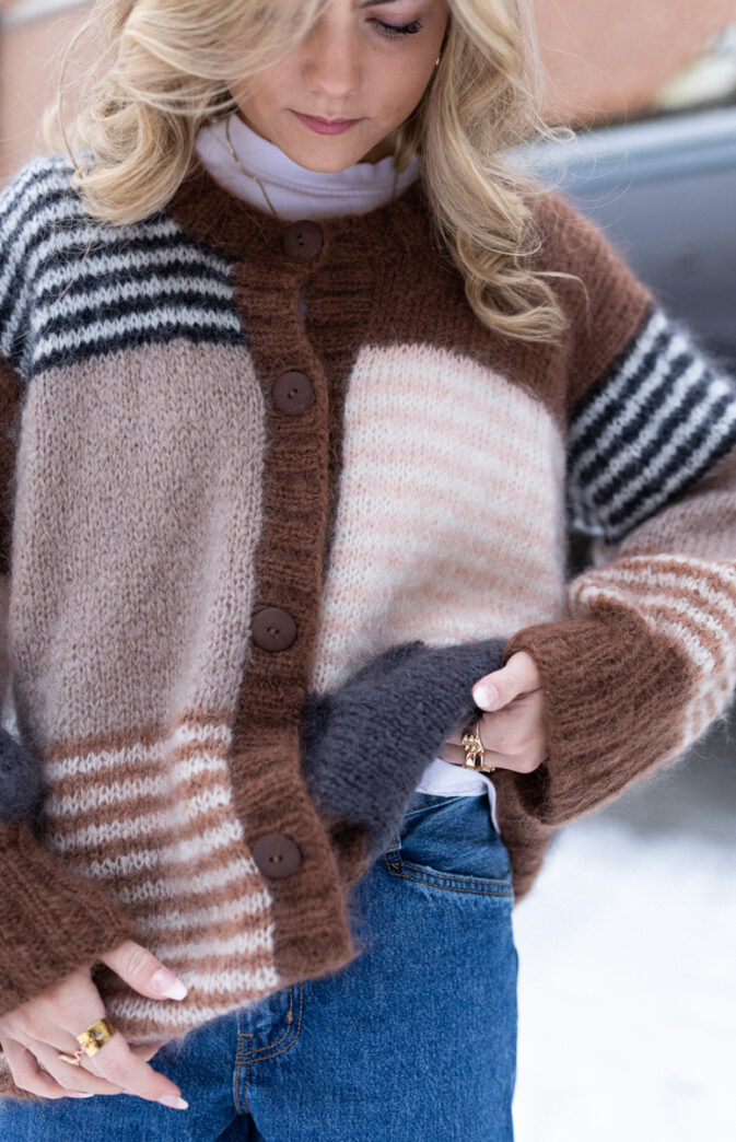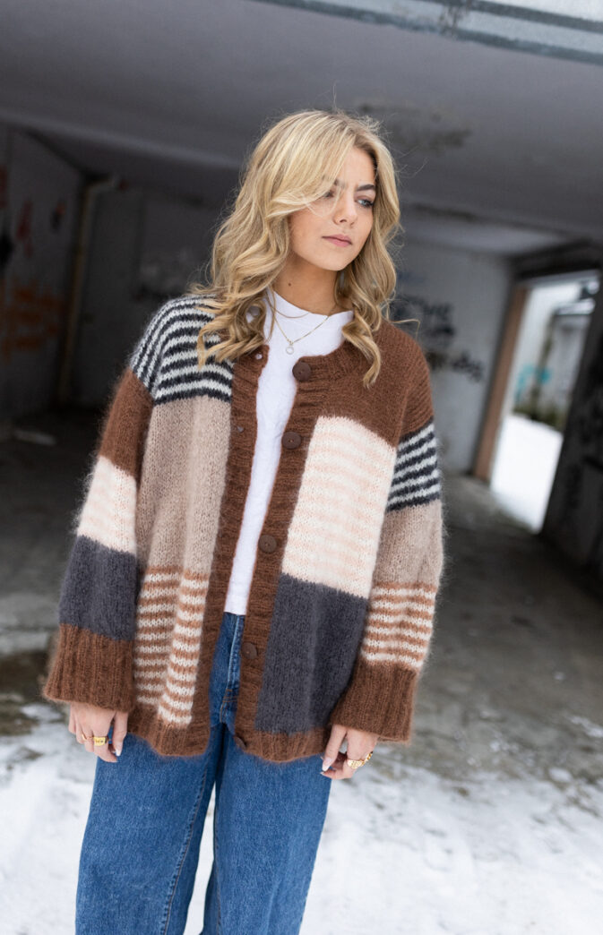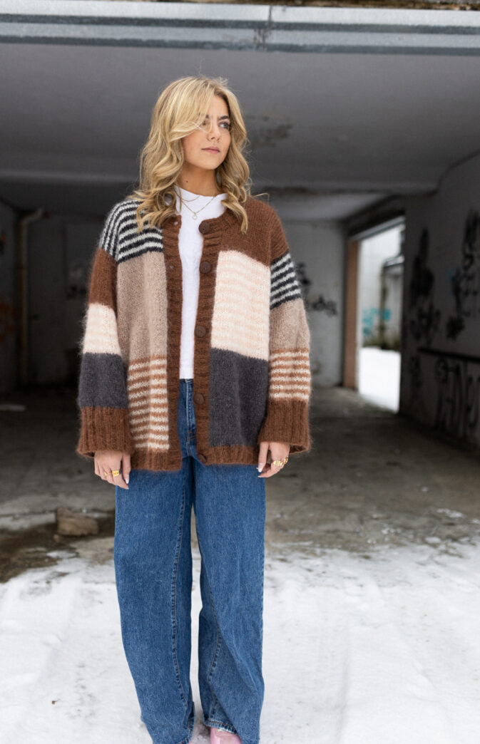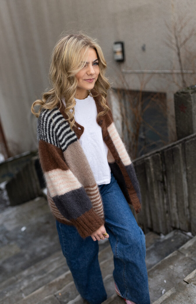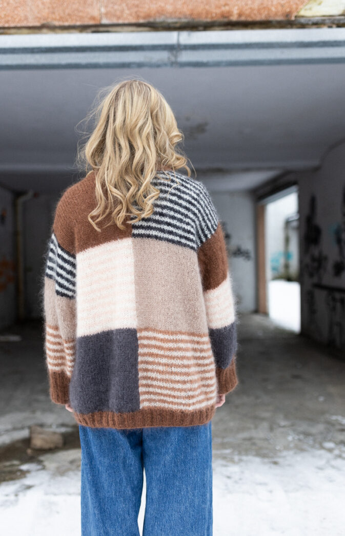 Strikkepakke med garn og gratis digital strikkeoppskrift. Kul cardigan til dame. Kan strikkes ensfarget, i 2 ulike farger eller multifarget. Her kan du leke deg med dine favorittfarger for å skape et unikt og spennende plagg. Strikkeoppskriften inneholder informasjon til å strikke de ulike versjonene. Strikkes ovenfra og ned, frem og tilbake.