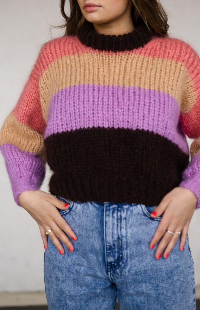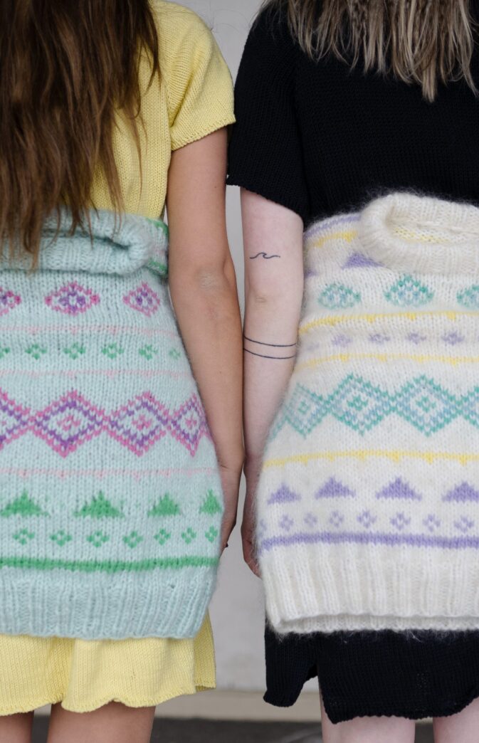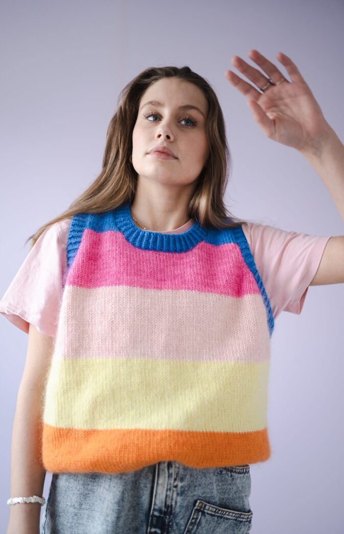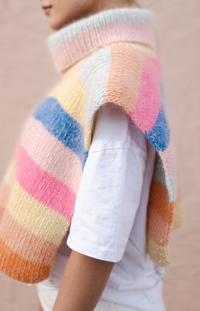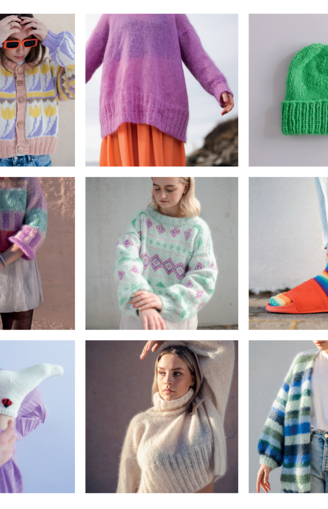 Plaggene er strikket opp i ulike farger og kombinasjoner for å inspirere deg til å leke med farger og sammensetninger. Her er det like fint med nøytale toner som skikkelig fargefest. Vi har også med ulike variasjoner av plaggene på flere oppskrifter, for at du skal kunne velge å strikke slik du liker dem. Velg mellom høy eller brettet hals, lang eller kort modell. Med splitt eller uten, striper eller ensfarget.