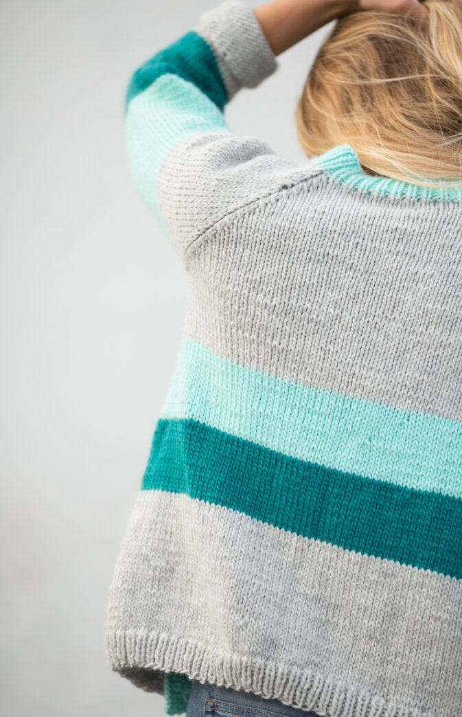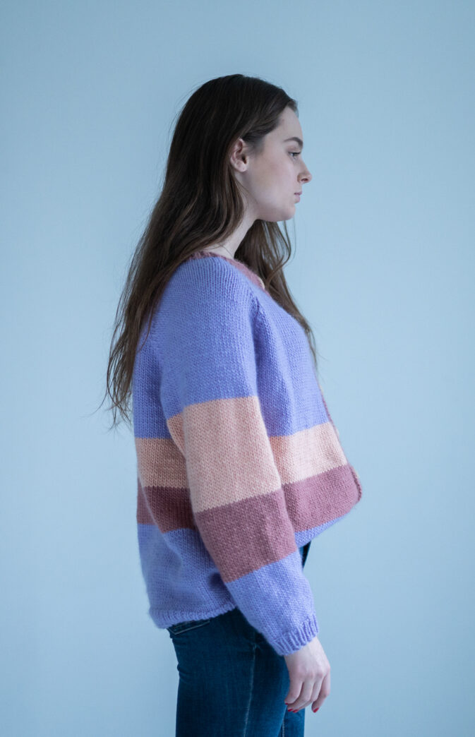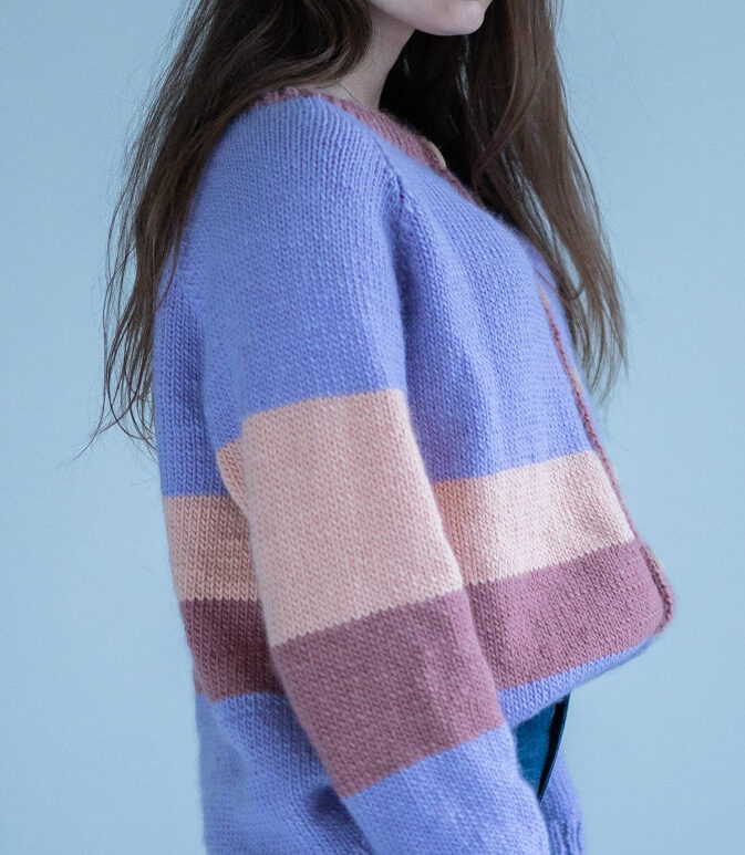 Strikkepakke med garn og gratis digital strikkeoppskrift. Jakke til dame. Fin og varm hverdagsjakke som skal strikkes både med og uten striper.