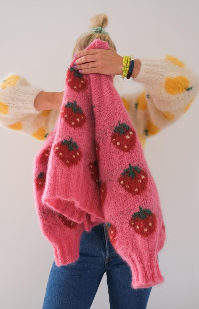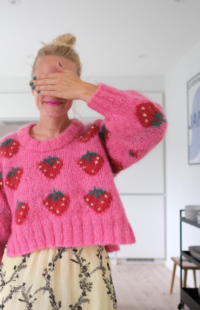 FRUITY GENSER JORDBÆR STRIKKEOPPSKRIFT OG GARN