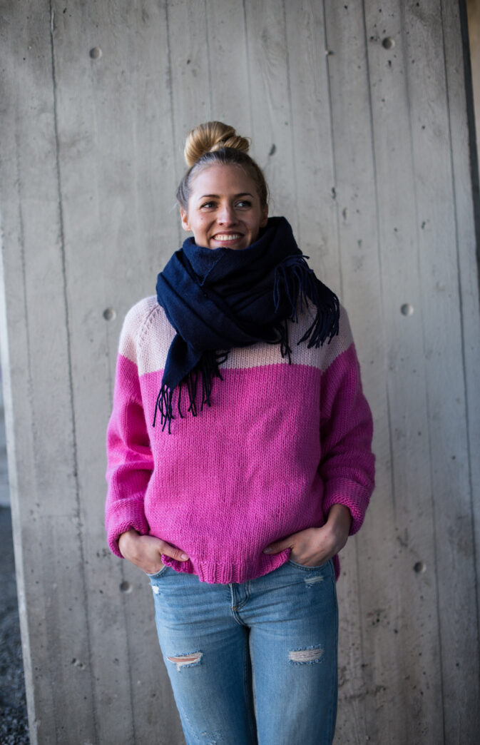 Strikkepakke med garn og gratis digital strikkeoppskrift. Deilig hverdagsgenser strikket i vårt myke Hip Wool garn. Smal og kort modell, litt lengre bak. Lek deg med farger og kos deg med strikk.