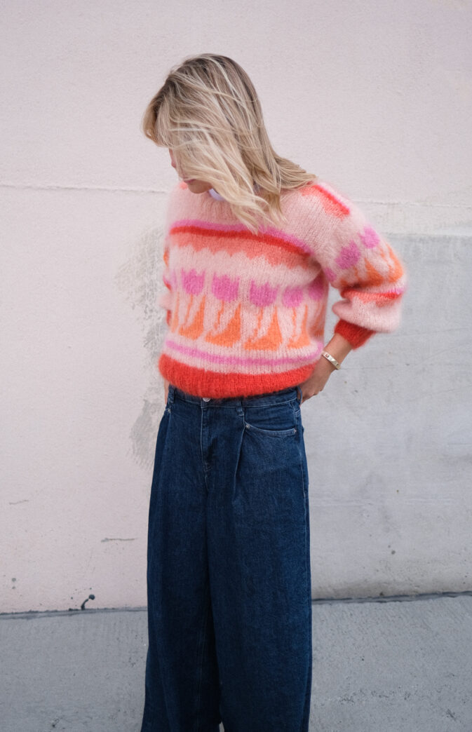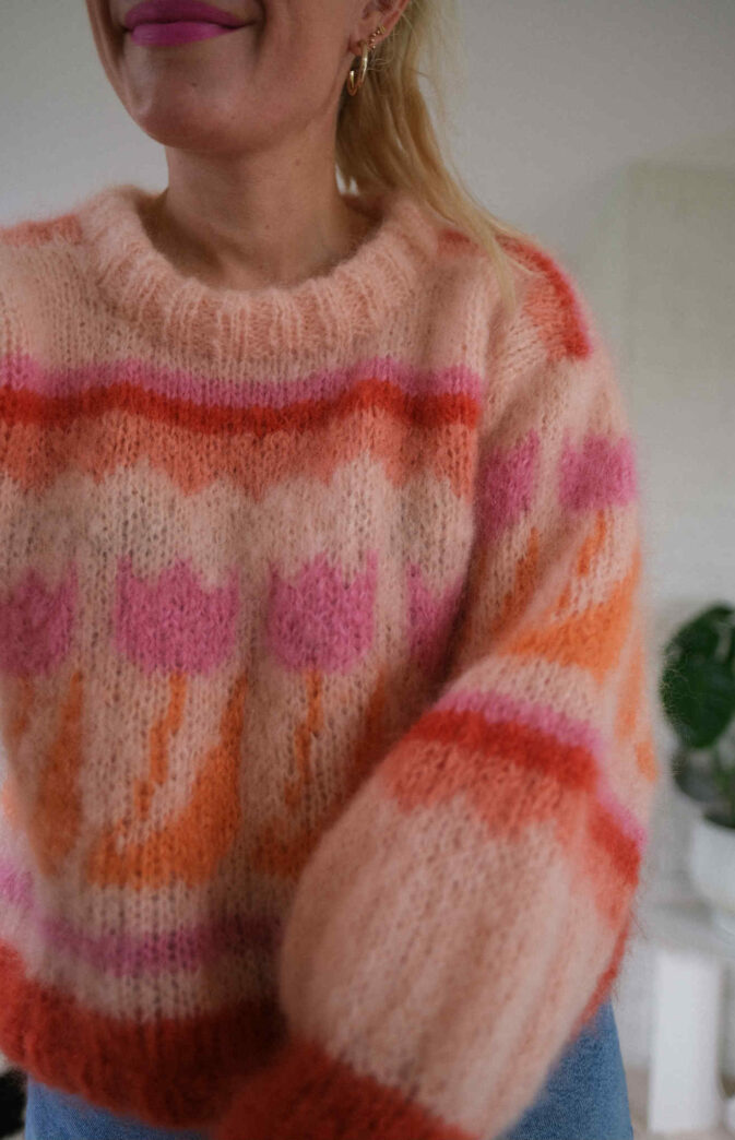 Strikkepakke med garn og gratis digital strikkeoppskrift. 80talls tulipan genser. En HipKnit klassiker som finnes i ulike varianter. Denne er strikket opp i litt mindre mønster og en rad tulipaner. Se gjerne våre andre varianter.