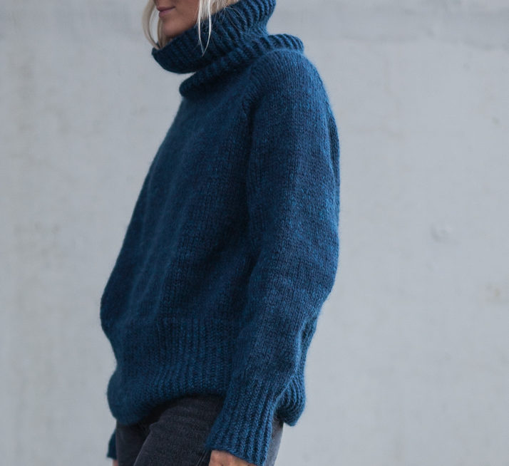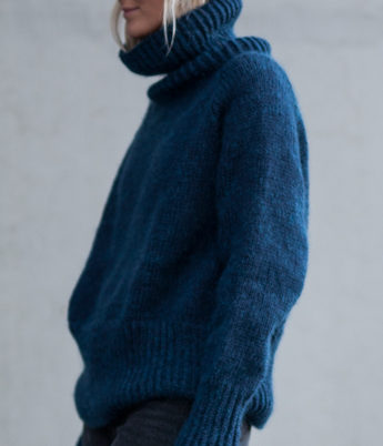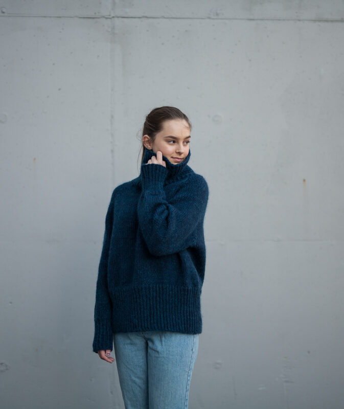 Strikkepakke med garn og gratis digital strikkeoppskrift. Strikkegenser med høy hals. Fantastisk varm og myk genser strikket med en tråd Hip Wool og en tråd Hip mohair.