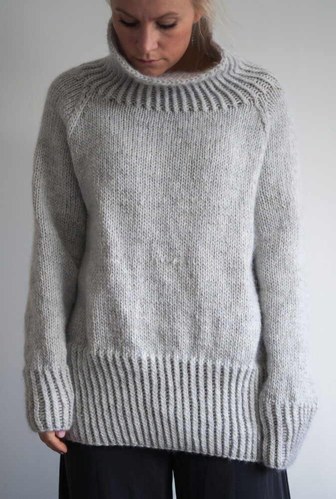 Strikket nedenfra og opp med raglanfelling.