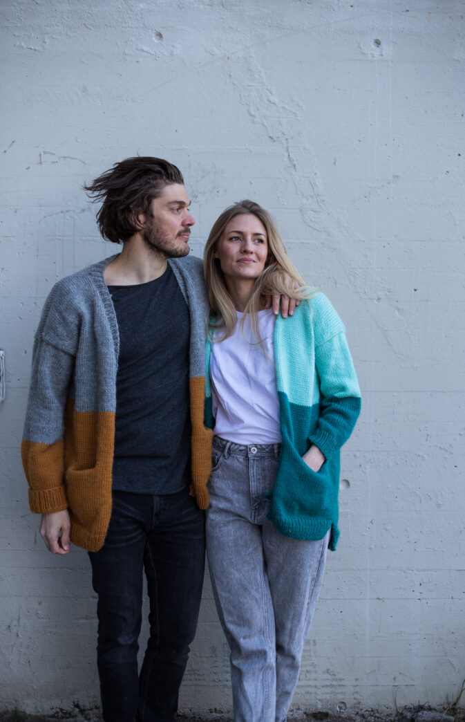 Strikkepakke med garn og gratis digital strikkeoppskrift. Herlig og gøyal jakke til herre. Moderne og kul jakke hvor du kan leke deg med dine favorittfarger – perfekt til sommerens festivaler