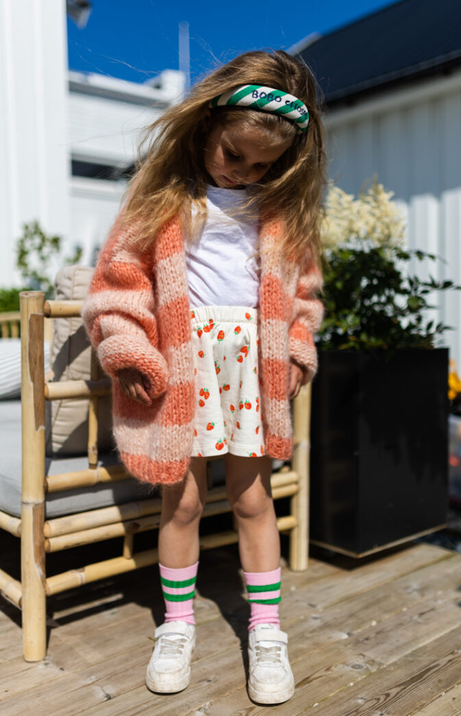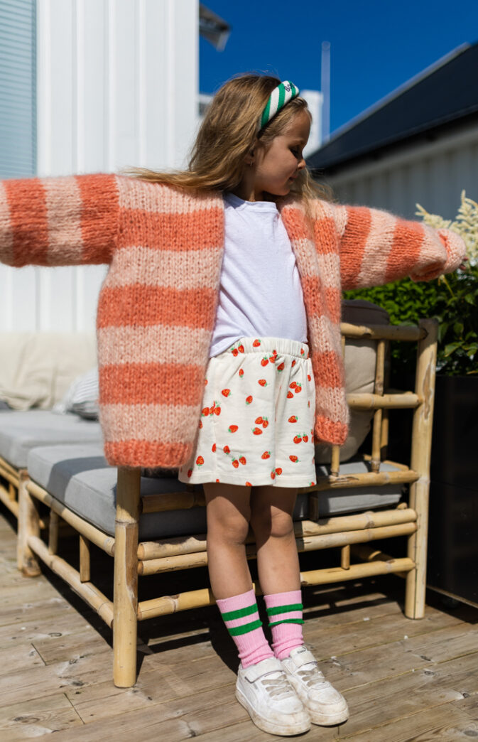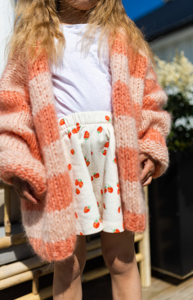 Avbildet i Fluff Mohair «Vanilla Flavour» og «Strawberry Cream» (på jente 5 år i størrelse 8 år)