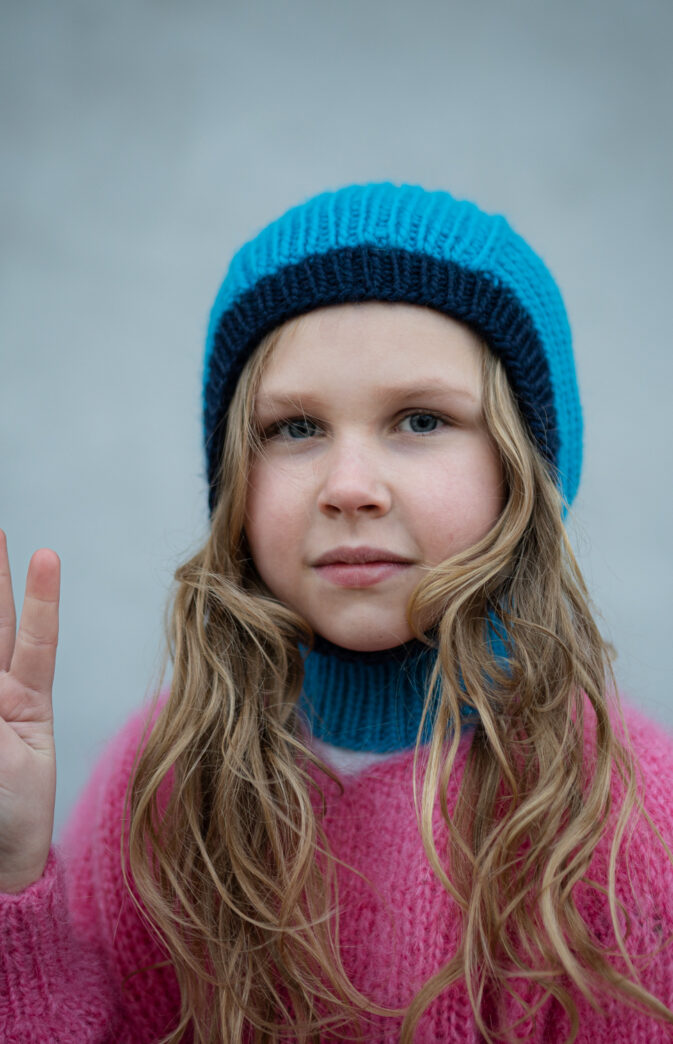 Strikkeoppskrift på kul balaklava til barn og voksen. Ribbestrikket balaklava, strikkes nedenfra og opp i Hip Wool.