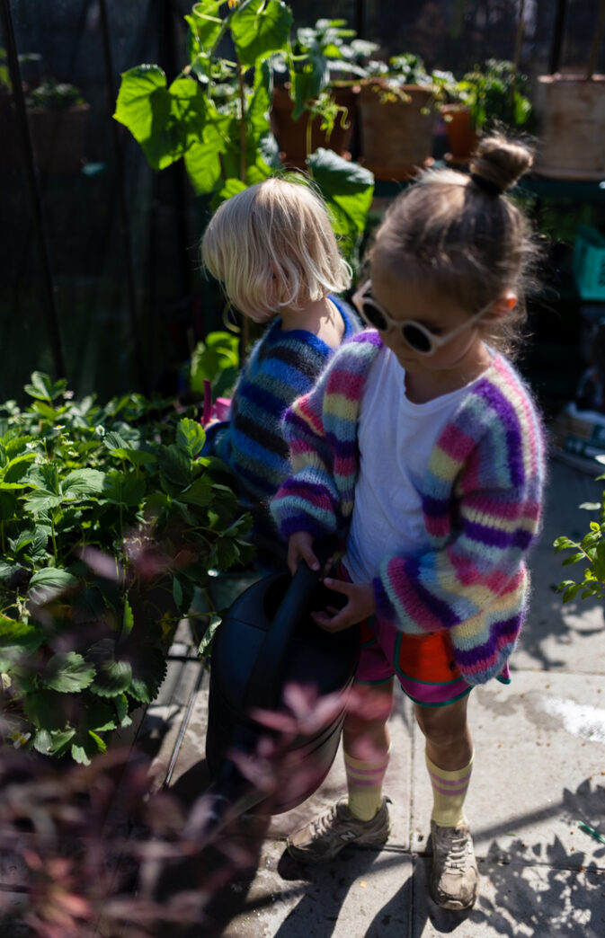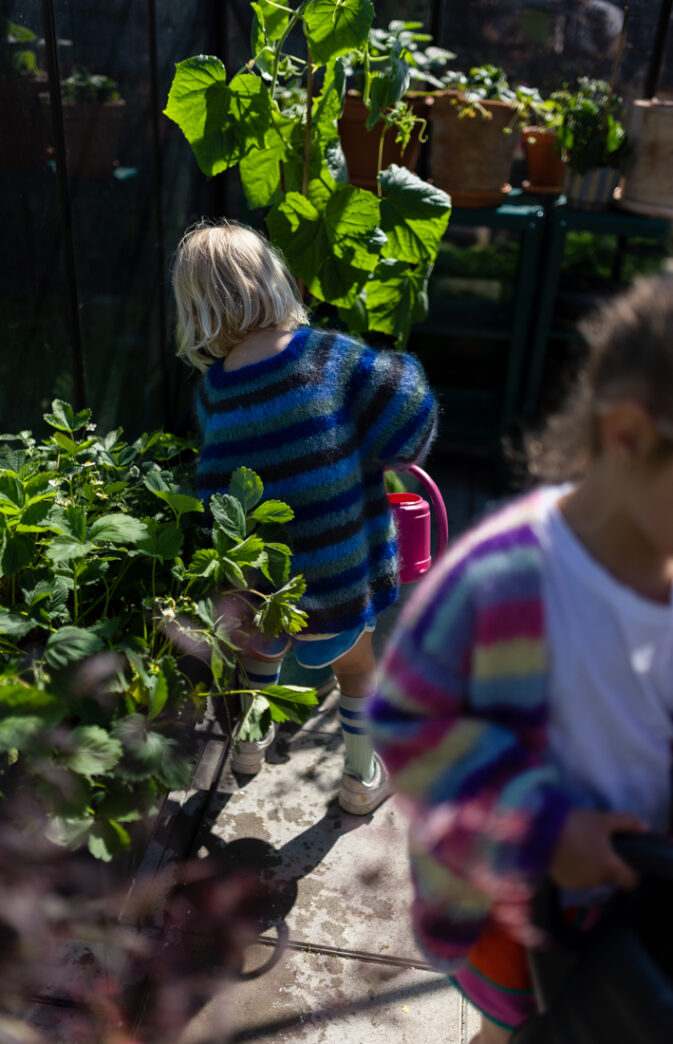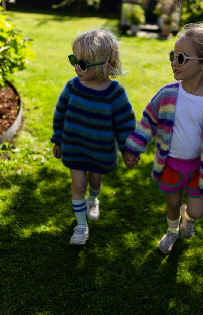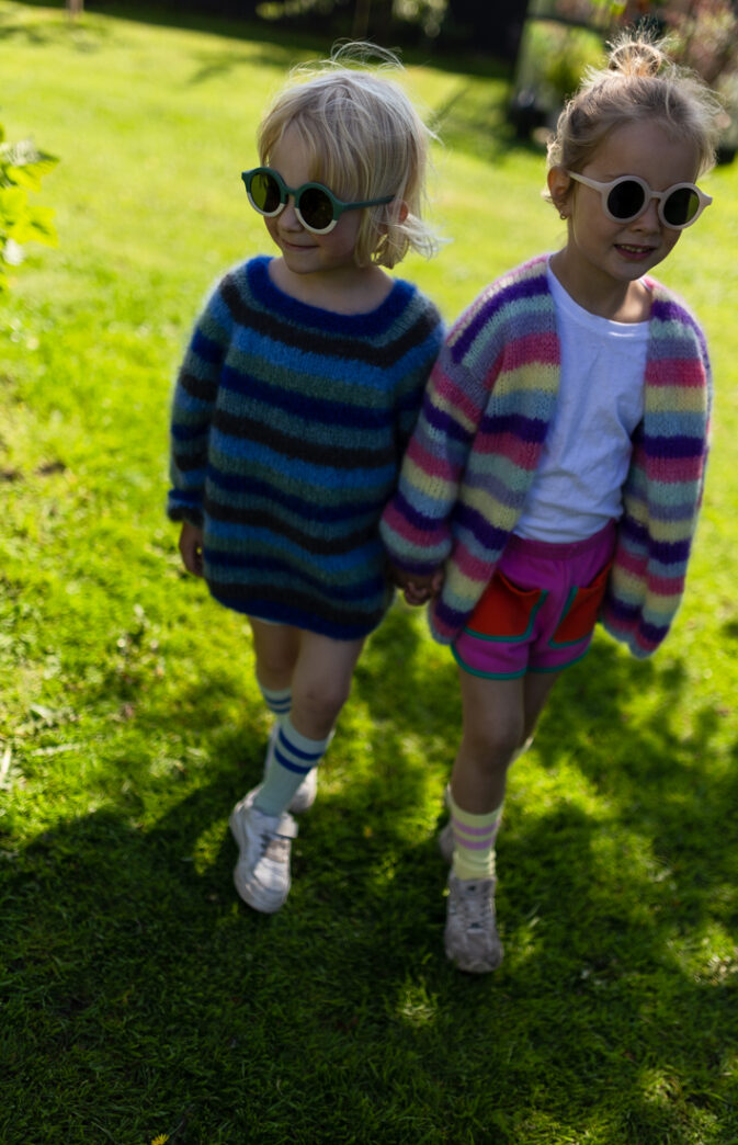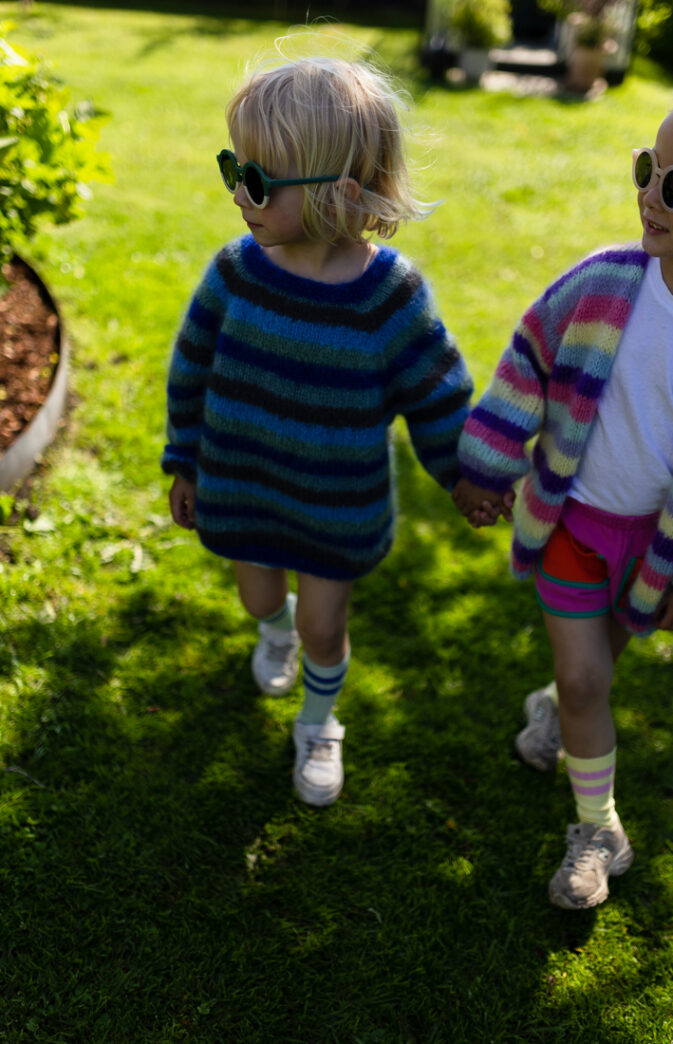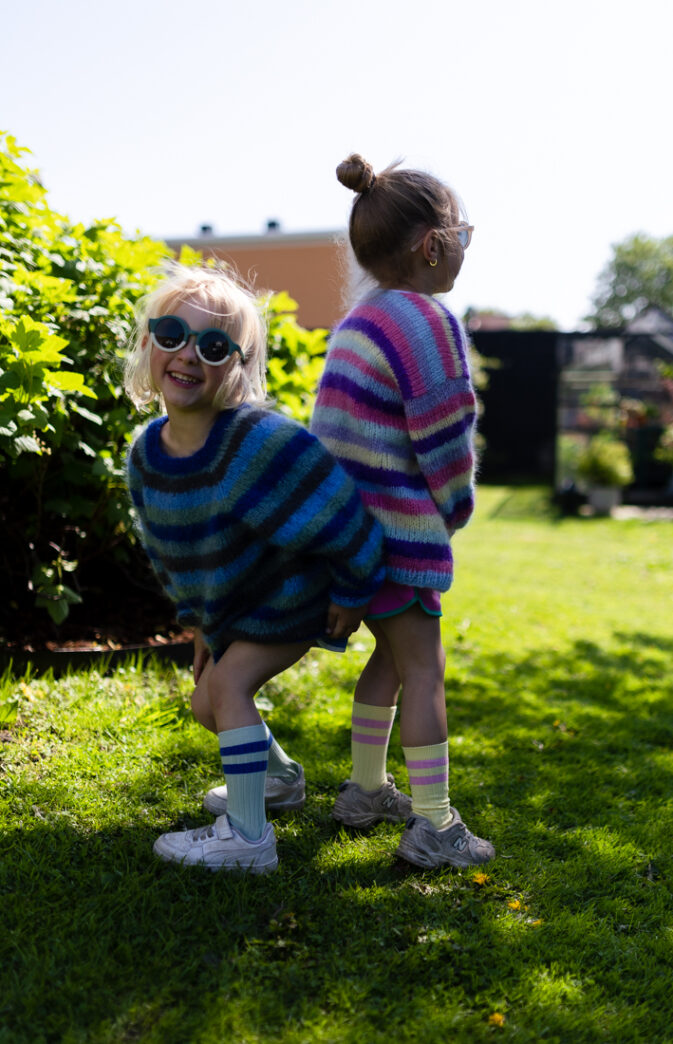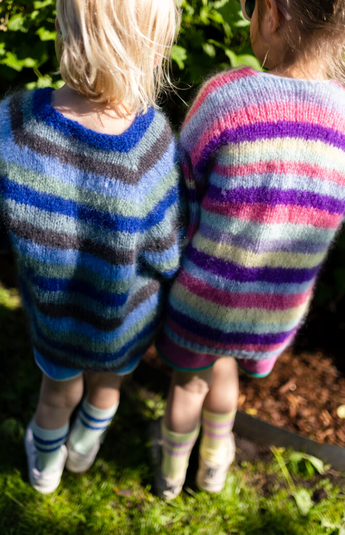 Strikkeoppskrift stripegenser. Deilig myk strikkegenser til barn. Mila genser til barn! Fargerik og gøy stripestrikk til barna. Strikkes ovenfra og ned med raglanøkninger. Enkelt design – velg dine favorittfarger og strikk i vei. Kan strikkes i flere farger eller ensfarget etter ønske.